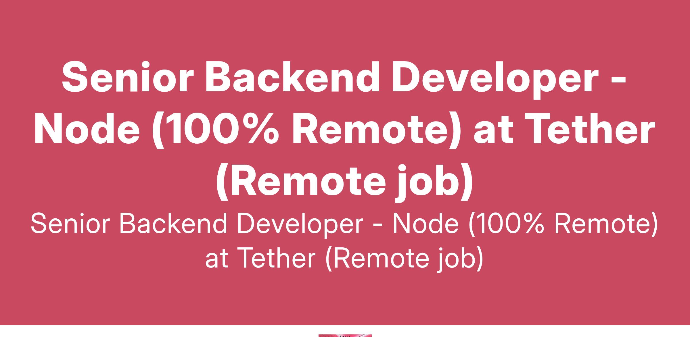 Senior Backend Developer - Node (100% Remote) at Tether (Remote job)
