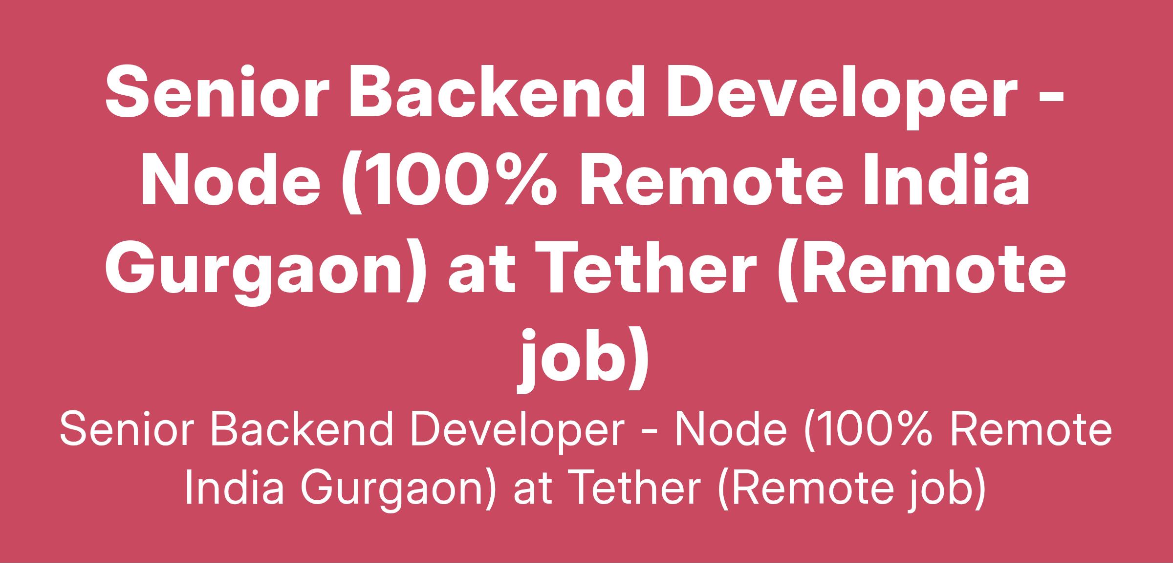 Senior Backend Developer - Node (100% Remote India Gurgaon) at Tether (Remote job)