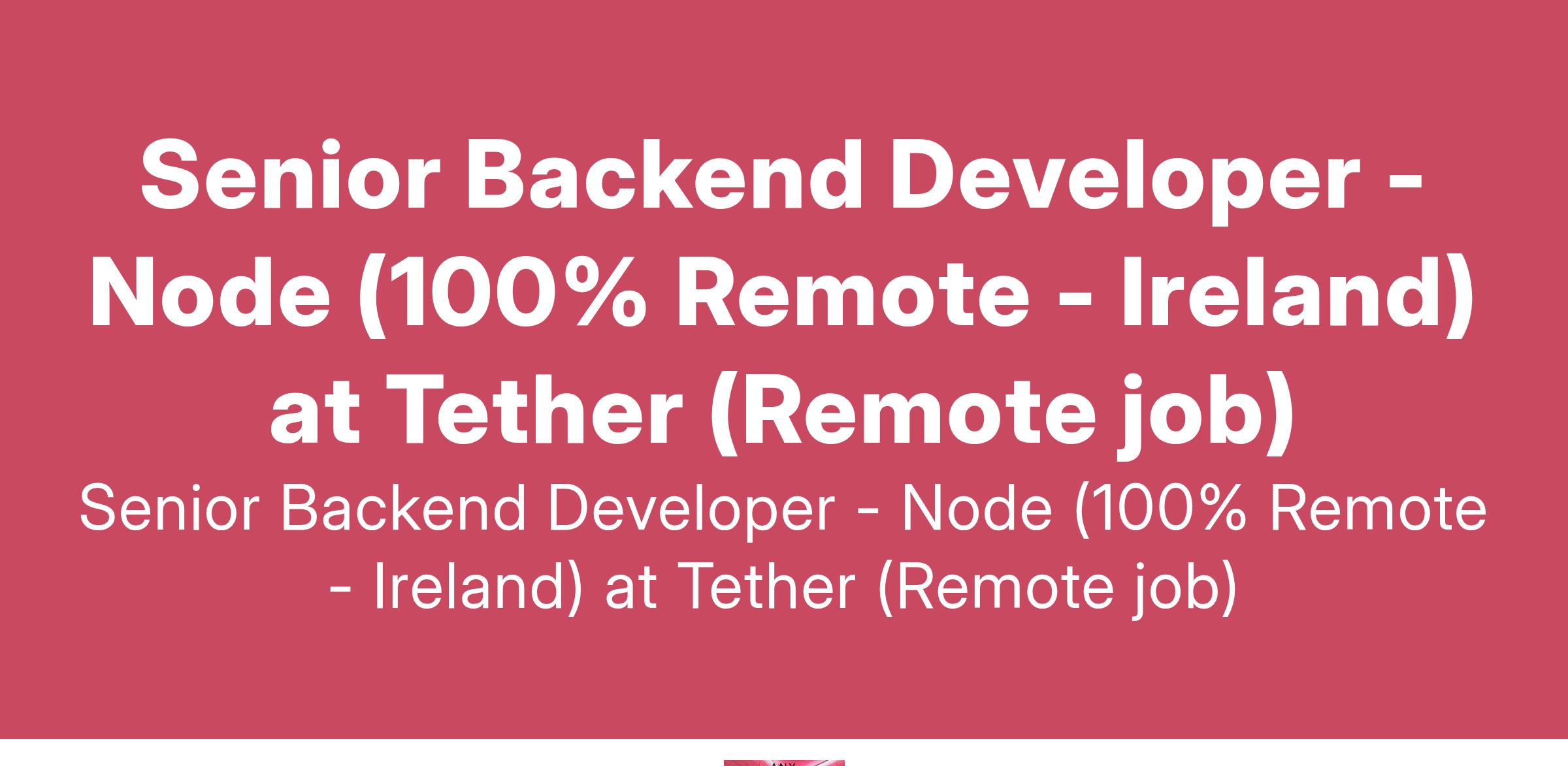 Senior Backend Developer - Node (100% Remote - Ireland) at Tether (Remote job)