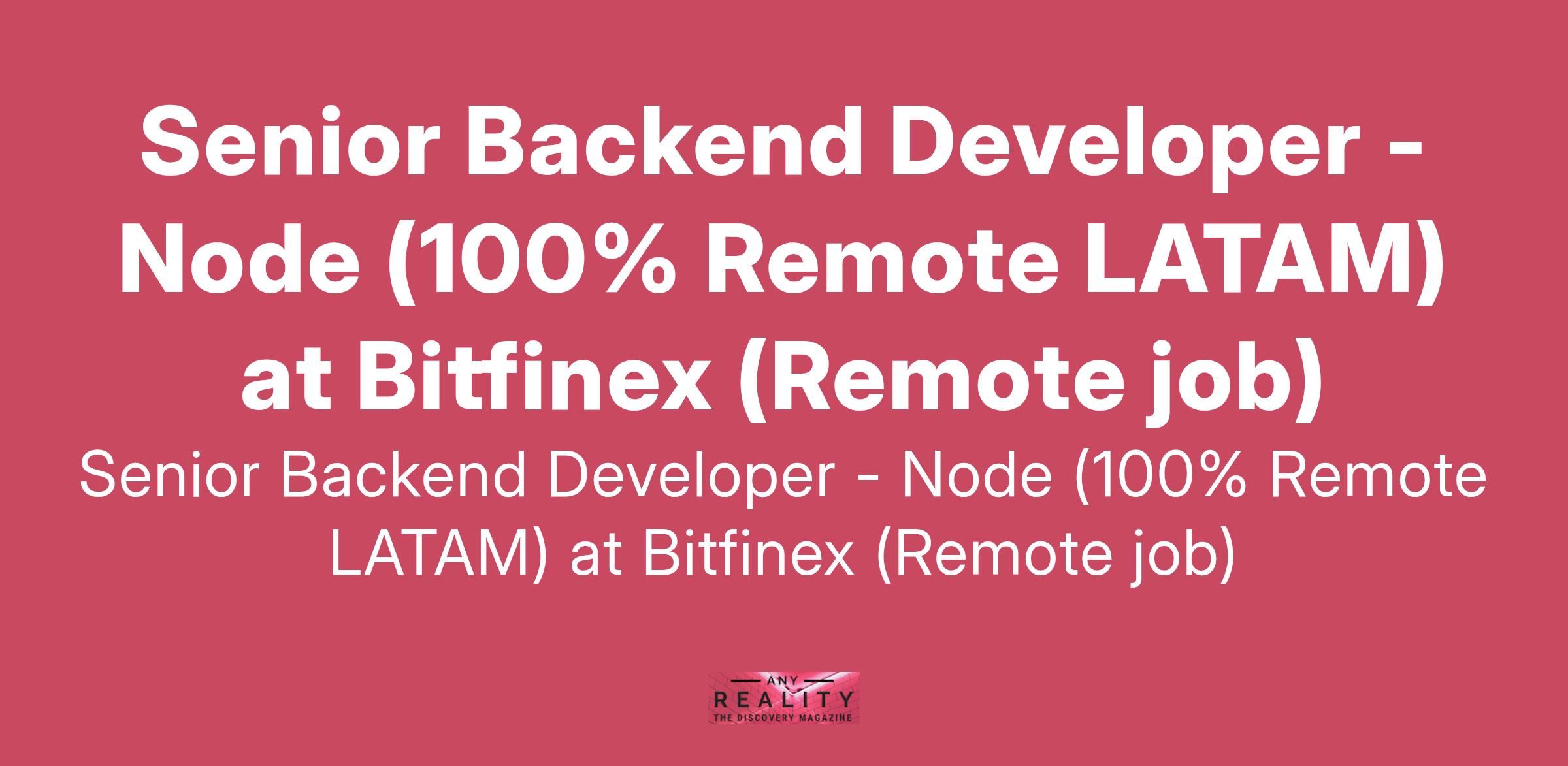 Senior Backend Developer - Node (100% Remote LATAM) at Bitfinex (Remote job)