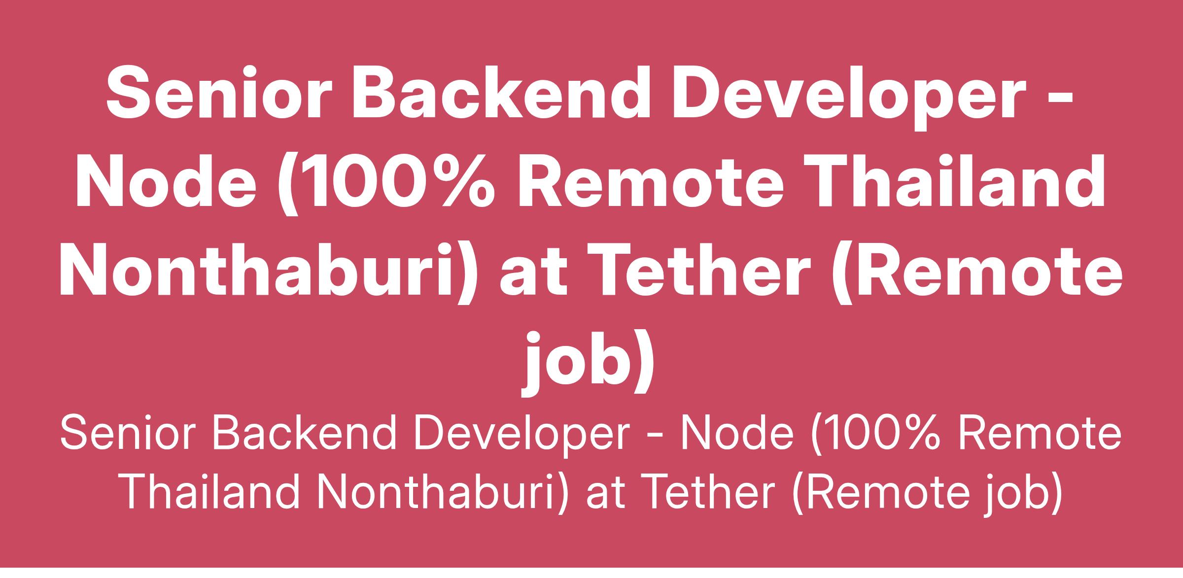 Senior Backend Developer - Node (100% Remote Thailand Nonthaburi) at Tether (Remote job)