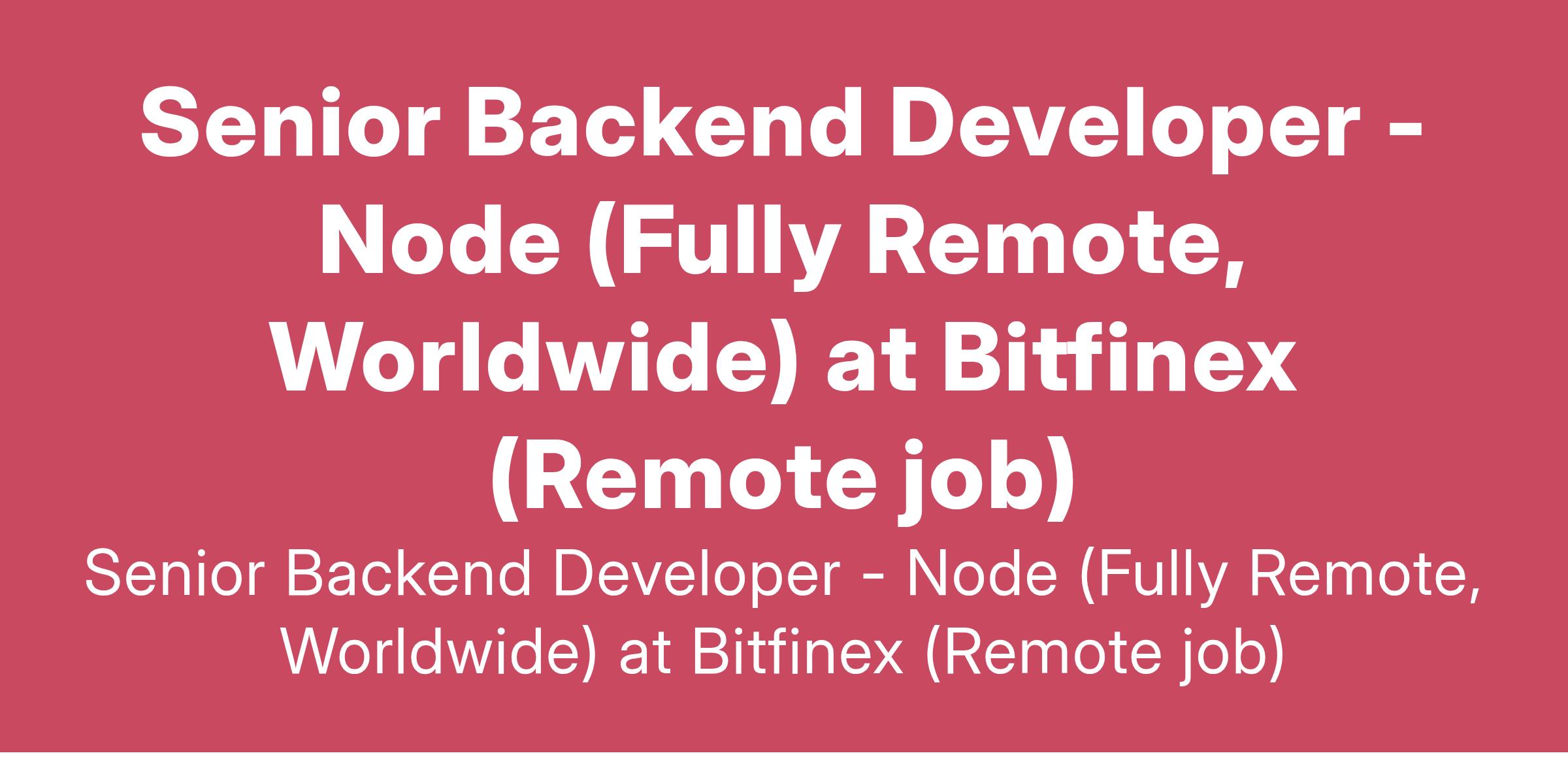 Senior Backend Developer - Node (Fully Remote, Worldwide) at Bitfinex (Remote job)