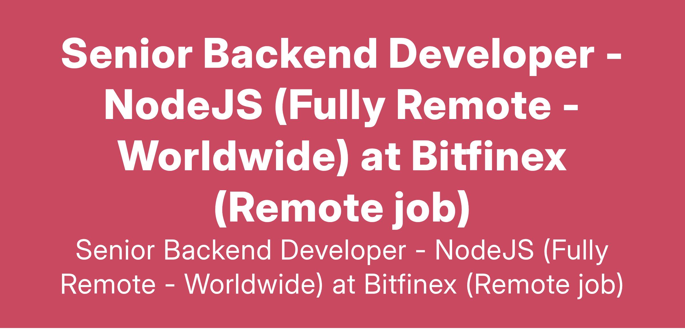 Senior Backend Developer - NodeJS (Fully Remote - Worldwide) at Bitfinex (Remote job)