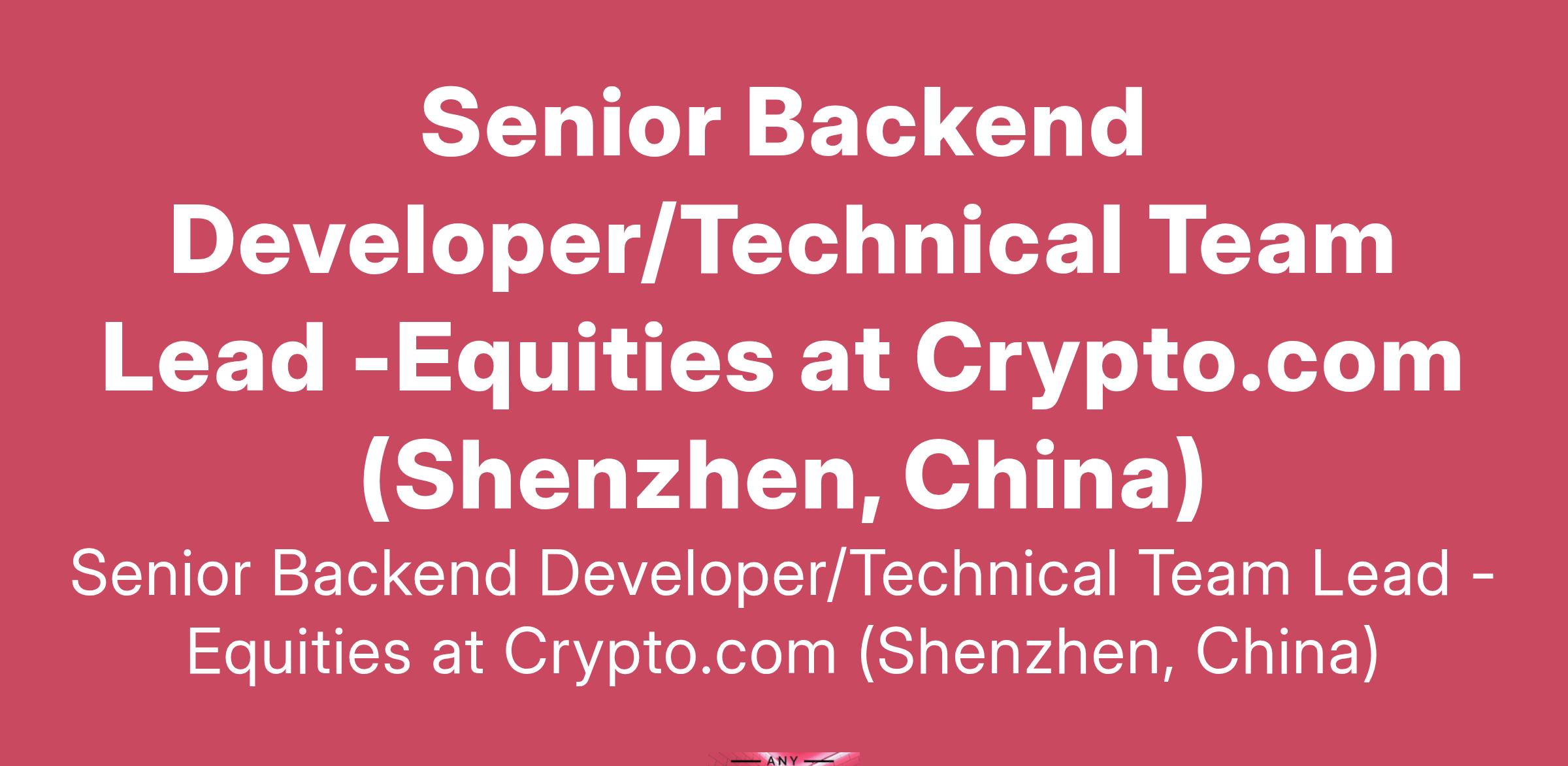 Senior Backend Developer/Technical Team Lead -Equities at Crypto.com (Shenzhen, China)