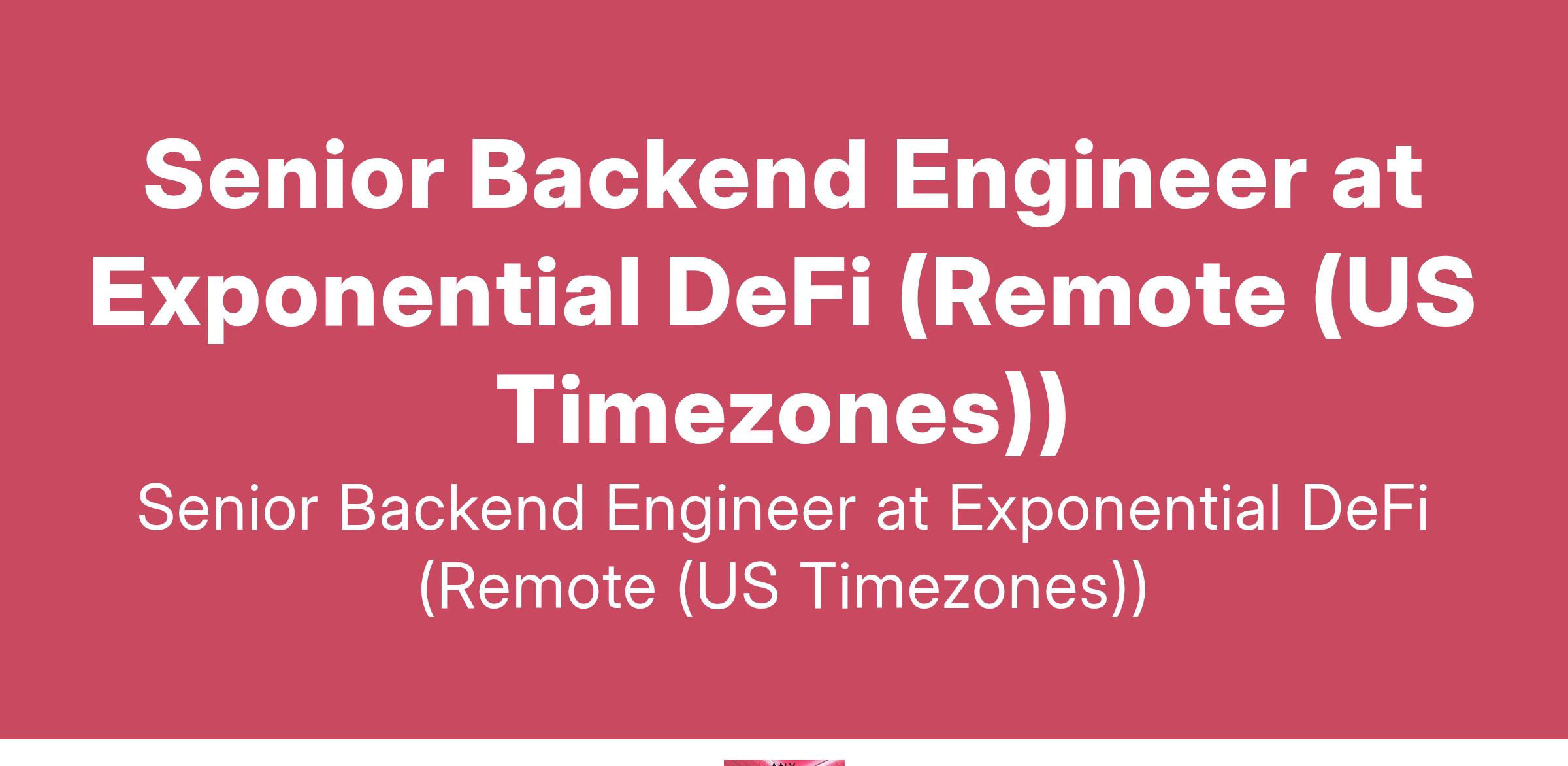 Senior Backend Engineer at Exponential DeFi (Remote (US Timezones))