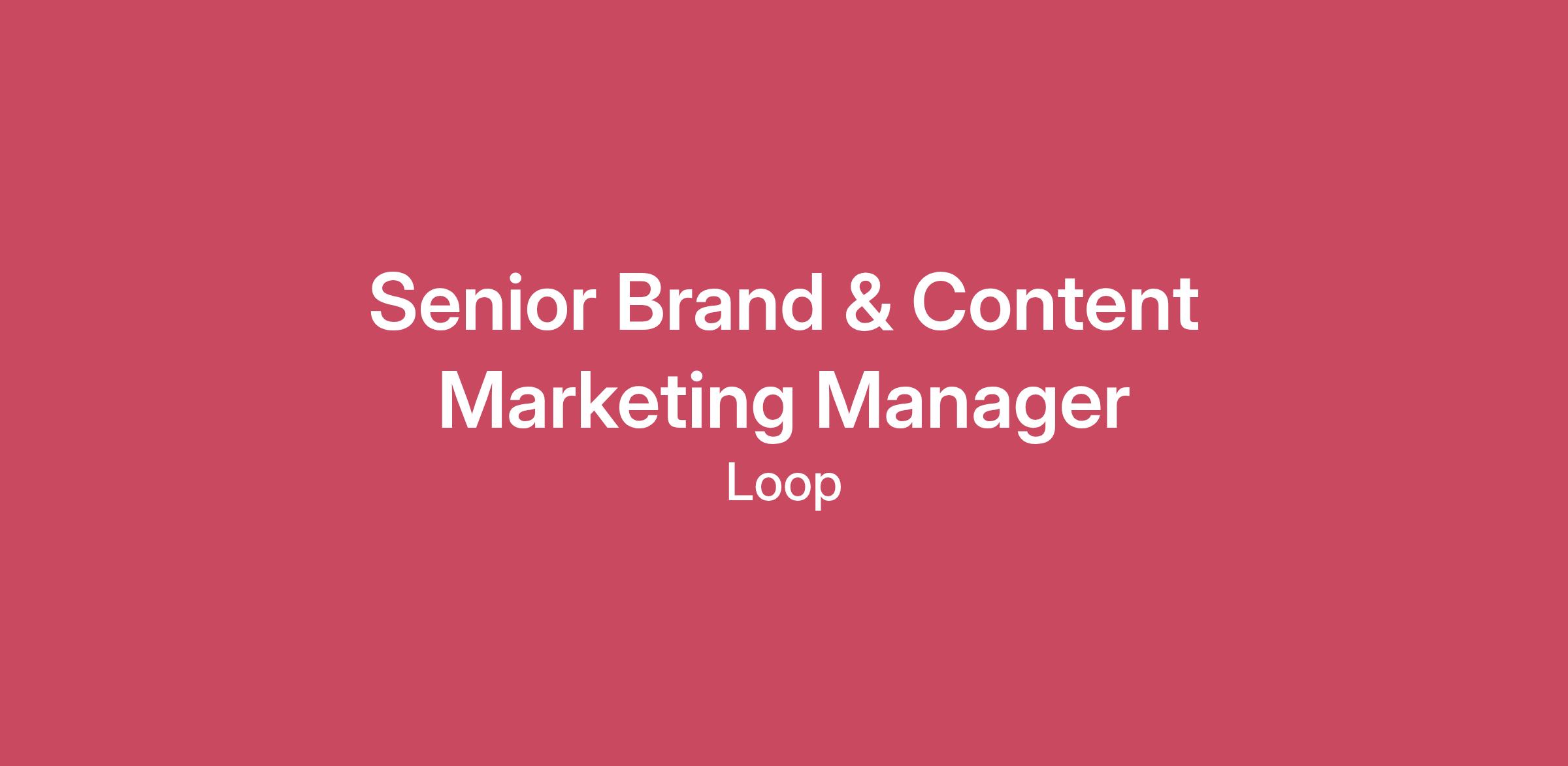 At Loop, we’re on a mission to transform the post-purchase experience for modern ecommerce brands. We power returns, tracking, and reverse logistics for 5,000+ of the most-loved Shopify brands — including Brooklinen, Figs, Princess Polly, and Ruggable.Content and brand are critical to how we shape this category. We believe our biggest growth lever isn’t just paid ads or outbound sales—it’s becoming the most authoritative, creative, and useful voice in ecommerce operations.That’s where you come in.We’re looking for a Senior Brand & Content Marketing Manager to build and scale a modern content and brand function at Loop. This isn’t a role for someone who wants to follow yesterday’s marketing playbook. It’s for a builder: someone who wants to rethink how a SaaS company shows up in the market, build a new category, and make Loop the go-to resource for ecommerce operators. This is a senior IC role owning our content strategy and brand voice end-to-end, with broad ownership and influence.At Loop, we’re intentional about the way we work so that we can do our best work. We call this our Blended Working Environment. We work from our HQ in Columbus, OH, or one of our Hub or Secluded locations, and are distributed throughout the United States, select Canadian provinces, and the United Kingdom. For this position, we’re looking for someone to join us in Eastern or Central Timezones.\nWhat You’ll Do:Develop and own Loop’s content strategy across the funnel: thought leadership, data-backed reports, real-world case studies, and brand-led storytelling. Design, orchestrate, and govern AI-powered content systems that can scale quality, consistency, and personalization. Act as editor-in-chief for Loop’s marketing org—setting standards, reviewing high-impact work, and ensuring every story, campaign and moment feels unmistakably “Loop”. Work closely with Product Marketing, Customer Marketing, Partnerships and Data to turn product usage, returns trends, and Gong calls into the Loop story that builds our category. Become the primary content and SEO owner of the Loop website, testing headlines, updating meta descriptions, writing blogs and case studies, etc. Create (and coach others to create) content that is opinionated, differentiated, and impossible to ignore. Develop content for brand campaigns that build credibility with the right audiences. What We’re Looking For:6+ years in B2B SaaS marketing, ideally with experience in ecommerce operations or data-rich products. An AI-forward mindset: you actively use AI to accelerate research, analysis, drafting, and repurposing, and can help establish best practices that raise the bar for the broader marketing org. A proven track record creating content that drives demand, shapes perception, and helps define a category. Strong data fluency: you’re comfortable digging into raw product usage data, exploring trends, asking smart questions, and synthesizing insights into compelling stories. Sound editorial judgment around data and AI — you know when automation adds leverage and when human insight and context matter most. Hands-on experience with modern marketing and data tools (e.g., HubSpot, Gong, Hex, Figma, analytics tools), and the curiosity to learn new ones as needed. Why Join Loop?You’ll own a critical part of Loop’s growth engine. You’ll shape how thousands of ecommerce brands discover, learn from, and engage with Loop. You’ll join a smart, collaborative marketing team that values creativity, clarity, and speed. You’ll get the chance to turn Loop into the category-defining voice for post-purchase commerce. \n$98,800 - $148,200 a yearWe know that making decisions about your career and compensation is a huge deal. Because of that, we’re incredibly thoughtful about our compensation strategy. We want you to feel safe and excited, but also comfortable with the compensation package of a startup. We’ve outlined some important information for you here, but please know there’s a lot more to compensation than we can cover in this job posting. The posted salary range is the base salary for this opportunity. The salary range is subject to change, and may be adjusted in the future.The actual annual salary paid for this position will be based on several factors, including, but not limited to: your prior experience and skills related to the position, geographic location, company needs, current market demands, and your total compensation goals. Great humans deserve great benefits. At Loop, you’ll be eligible for benefits such as: medical, dental, and vision insurance, flexible PTO, company holidays, sick & safe leave, parental leave, 401k, monthly wellness benefit, home workstation benefit, phone/internet benefit, and equity.\n#LI-ST1Loop StoryCommerce should feel effortless. Every product adored, every order perfect, every customer loyal for life. But reality is messier: operations get tangled, margins grow thin, and trust is fragile. That’s where Loop steps in. We create confidence where commerce fails.We started by fixing returns and exchanges. Today, we’re building a connected commerce operations suite — powering everything from order tracking to fraud prevention, with hundreds of innovations in between. Grounded in data and insight, our platform helps merchants make smarter decisions with every transaction. Over 5,000 of the world’s most loved brands trust Loop to turn cost centers into growth engines. Our mission is simple: protect margins, delight customers, and help merchants build businesses that last.Life at Loop is rooted in our core values. We balance high empathy with high standards, knowing that work is better when we can show up authentically and resilience is built by facing challenges head-on. We expect you’ll grow quickly, learning skills that last far beyond your time here. Loop is a formative chapter in your career — a chance to shape the future of commerce and to leave better than when you