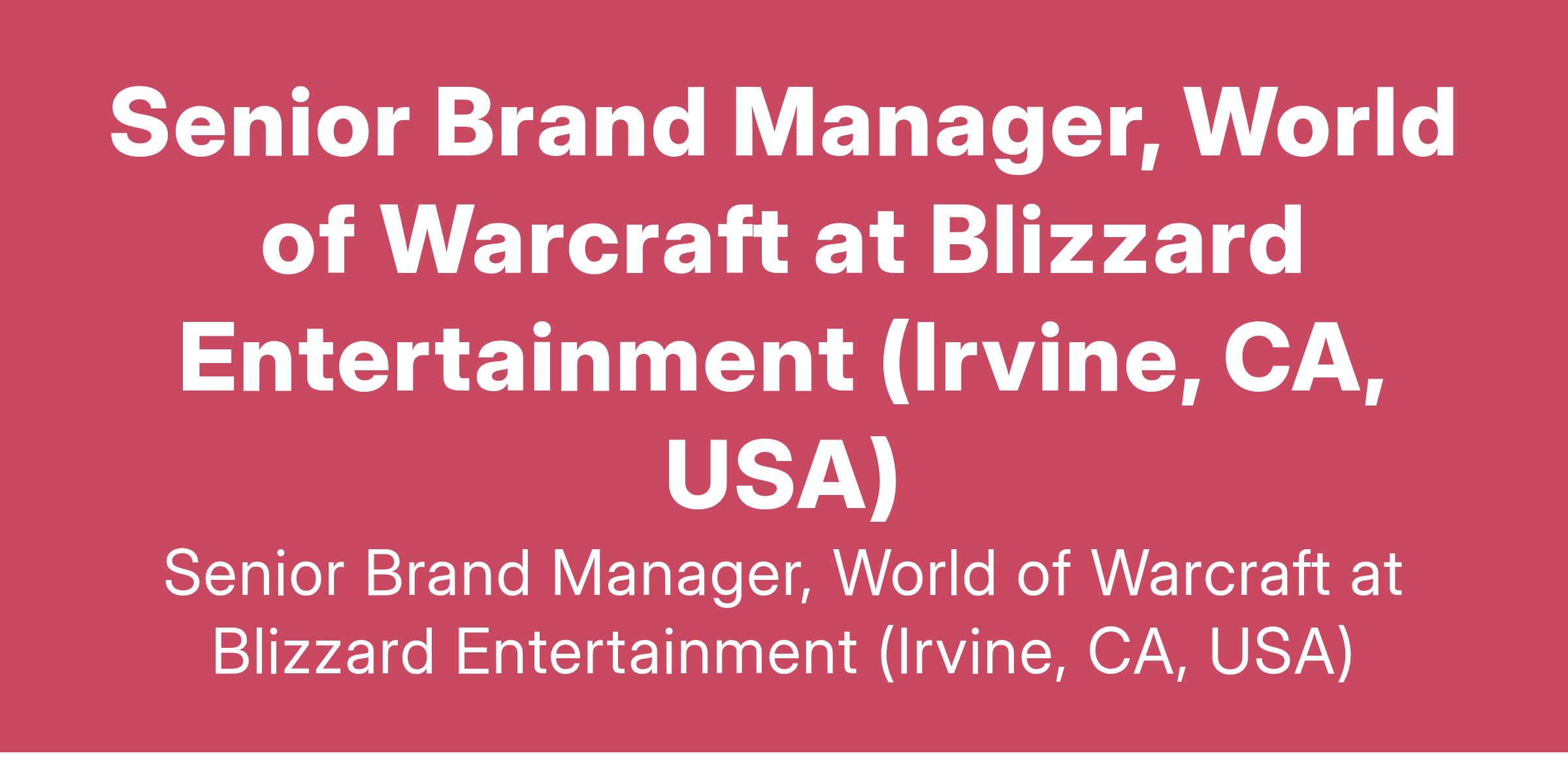 Senior Brand Manager, World of Warcraft at Blizzard Entertainment (Irvine, CA, USA)