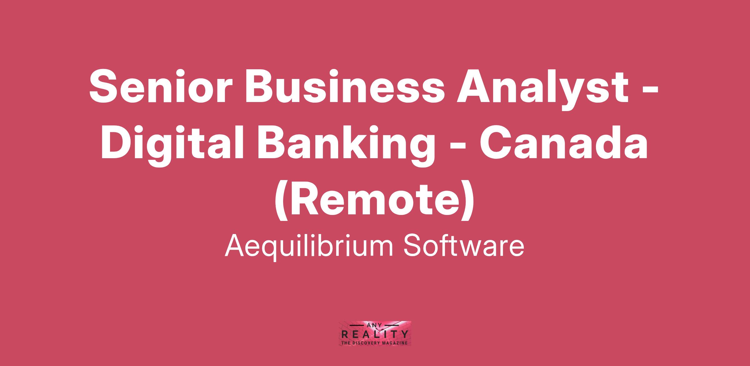 Senior Business Analyst - Digital Banking - Canada (Remote)