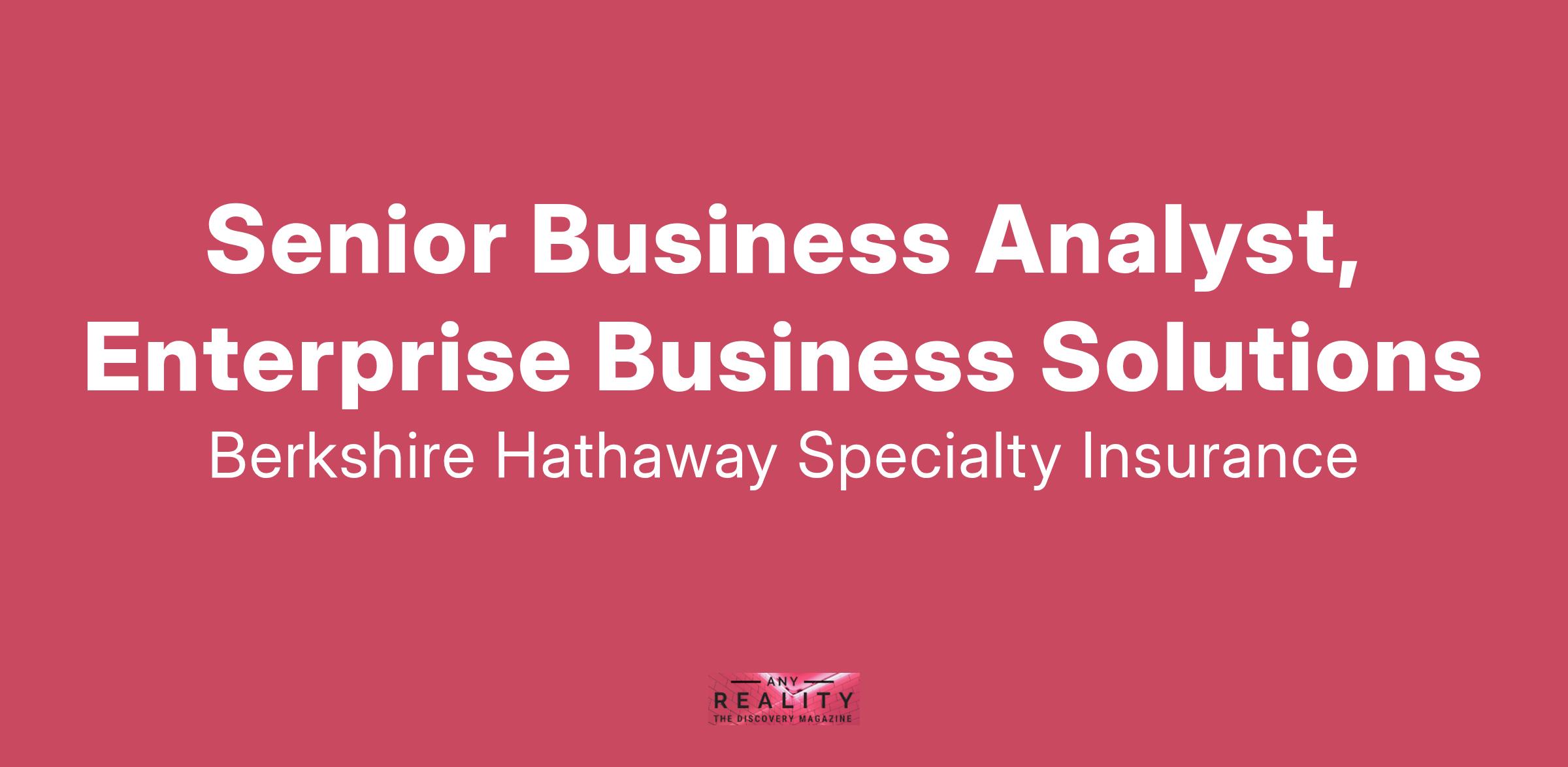 Berkshire Hathaway Specialty Insurance (BHSI) has an exciting opportunity for an IT professional who possesses extensive technical and delivery skills to join our Enterprise Business Solutions Team as a Senior Business Analyst. One primary responsibility in this role will be accountable for understanding the business requirements, system processing, implications and data needs of the Customer& Broker engagement function for rebuilding a customized, global analytics & intelligence solution. The successful candidate should have proven ability to deliver technology solutions to solve complex business issues. The role will partner with both Business leaders and IT resources across the globe to translate business needs into system requirements. The candidate must possess a passion for delivering value through technology. With time, this role will expand to support other functional areas.