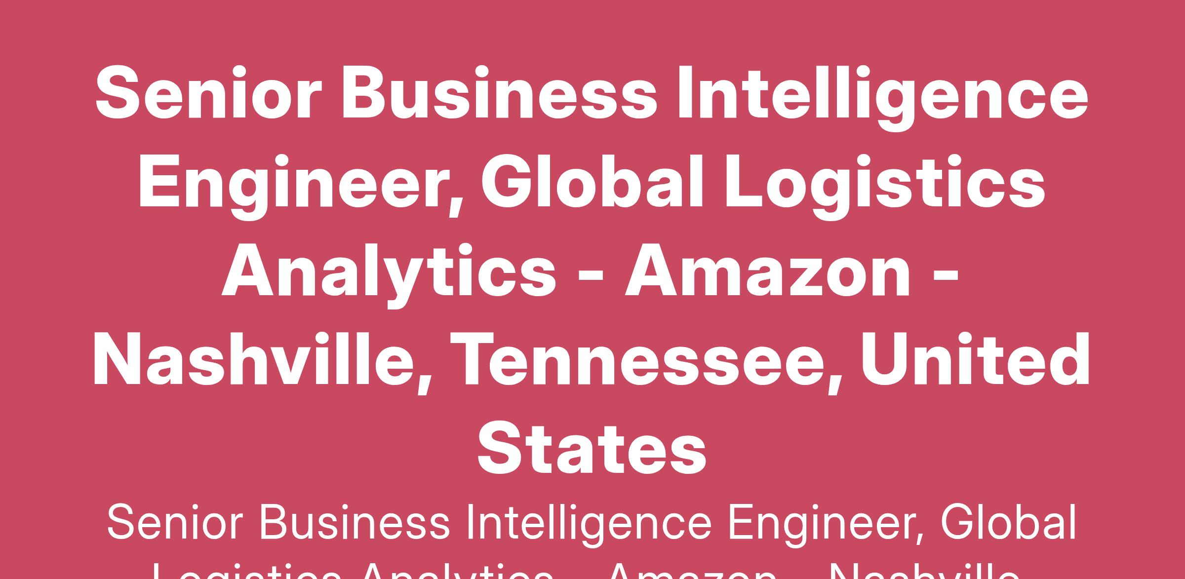 As a Senior Business Intelligence Engineer, you'll start your day by checking in with your team across different time zones. You might begin working on a new data pipeline to improve visibility into import shipment delays, collaborating with data engineers to optimize the solution. Later, you could meet with business stakeholders to present your latest analysis on cost-saving opportunities in the logistics network. Throughout the day, you'll be problem-solving, coding, and mentoring junior team members, all while keeping an eye on the broader impact of your work on Amazon's global logistics operations.