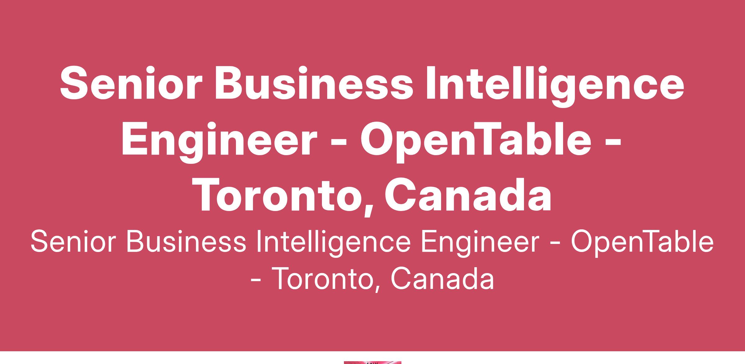 The Senior Business Intelligence Engineer level position is expected to have a strong understanding of the OpenTable Systems and its impact on the data architecture. This position will have to be a strong communicator, have an analytical approach and strong technical skills and be comfortable delivering results in ambiguity. Experience with statistical modelling background preferred.