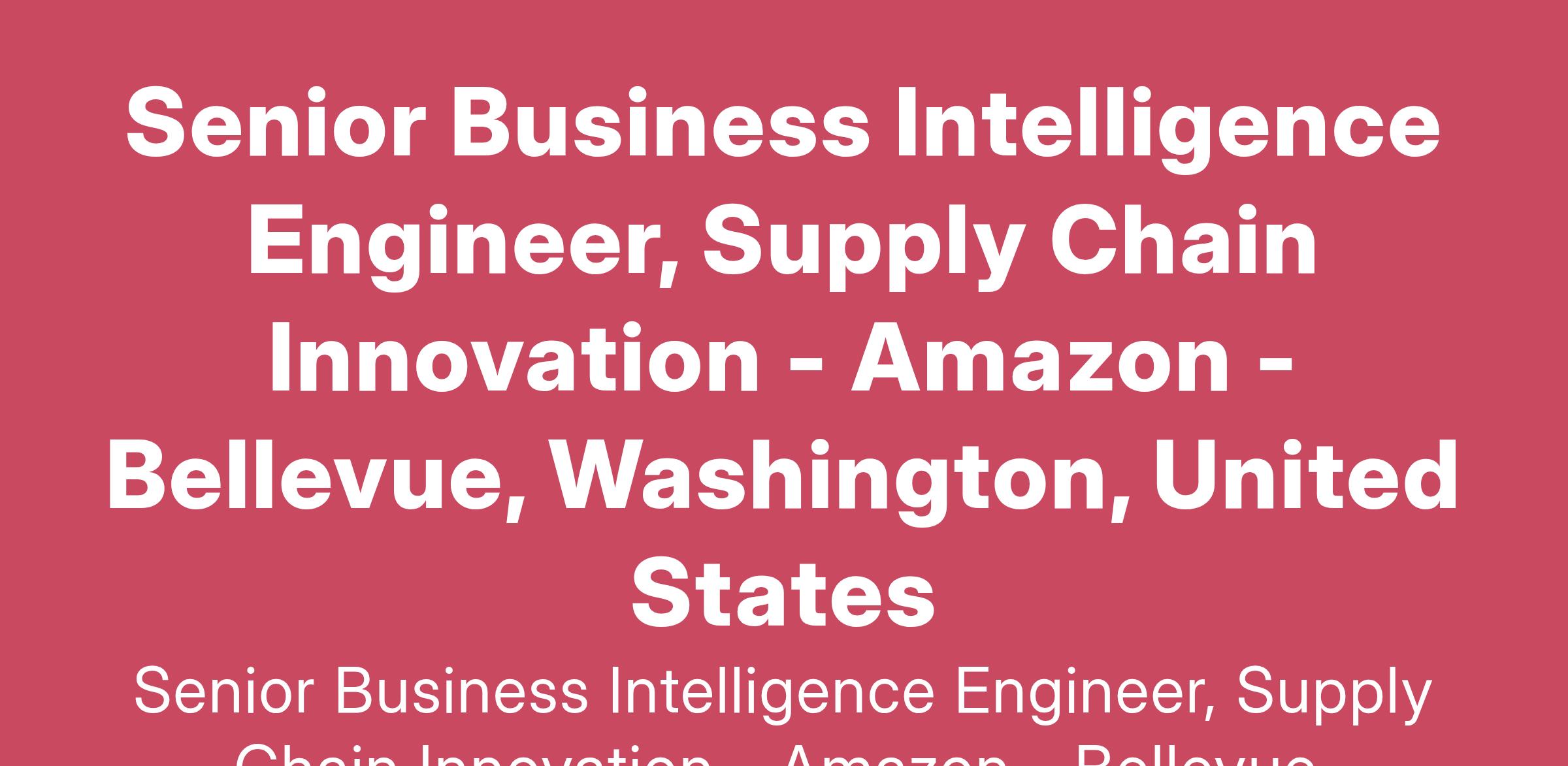 Amazon’s Global Supply Chain (GSC) is looking for a Business Intelligence Engineer for the Supply Chain Innovation (SCI) team. SCI plays an important role in defining and shaping Amazon’s inbound supply chain's long-term strategy. We are responsible for the incubation and execution of highly visible supply chain projects across low-cost storage, bulk fulfillment, inbound cross-docks, fast-deploy fulfillment, and network optimization. Our solutions address the needs of the inbound network in order to meet the speed, cost, and resiliency demands of our customers.