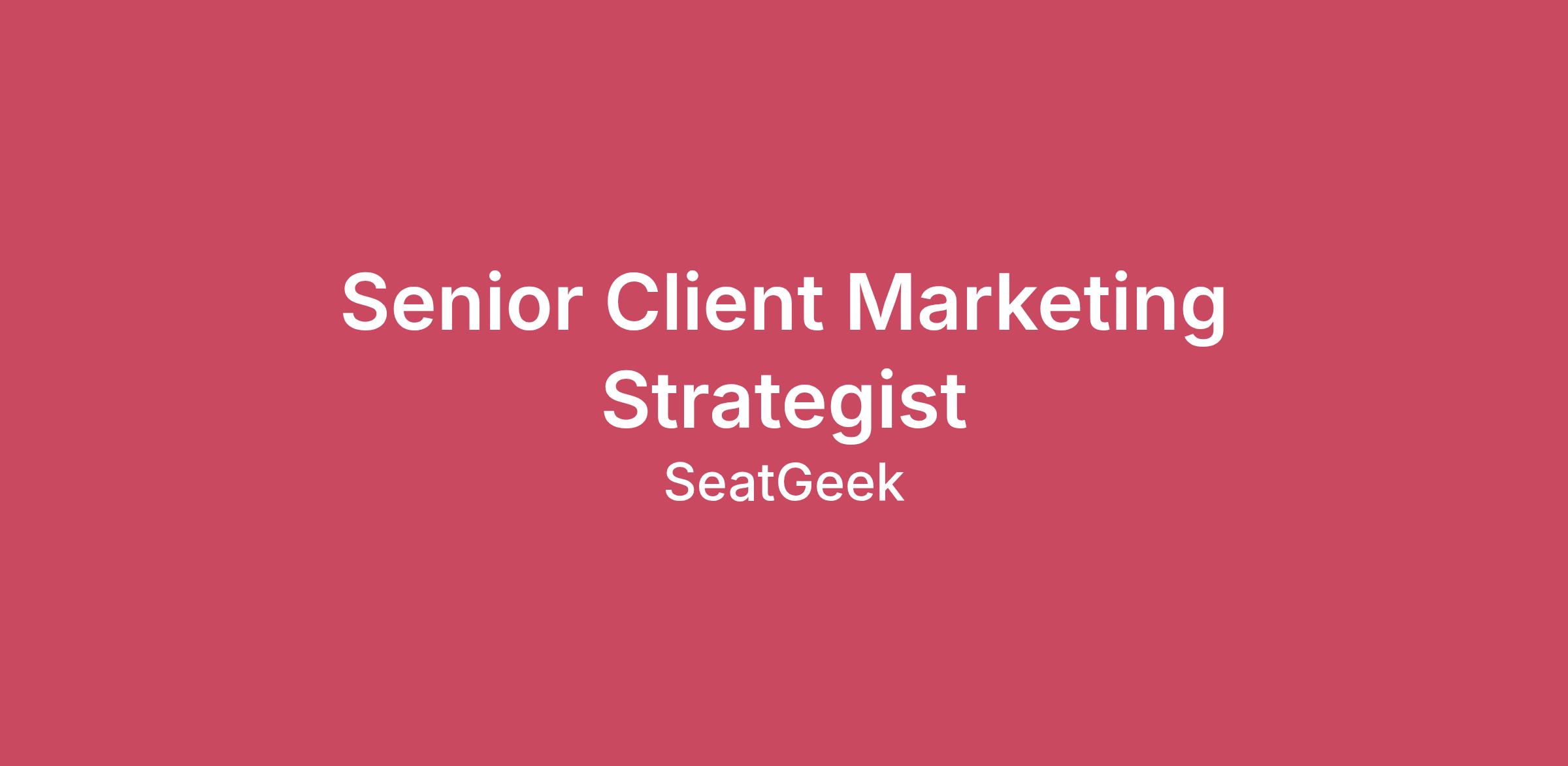 SeatGeek believes live events are powerful experiences that unite humans. With our technological savvy and fan-first attitude we’re simplifying and modernizing the ticketing industry. As a Senior Client Marketing Strategist you’ll work directly with SeatGeek’s growing client base, which hosts some of the biggest concerts, games and events across a variety of stadiums and arenas. You’ll act as the front-line partner responsible for helping them achieve their business and marketing goals. You’ll work closely with client marketing teams to empower them with clear strategy, best practices, and scalable solutions, while also serving as a critical liaison to SeatGeek’s internal marketing organization. With ownership of a large book of business (30+ clients), you must excel at prioritization, building repeatable frameworks, and delivering impact at scale. You’ll need strong judgment, including the ability to set expectations, make tradeoffs, and say no when needed to protect focus and outcomes. You’re highly collaborative, strategic, and comfortable navigating complex client needs while driving alignment across teams. You’ll report to our Director, Category Marketing and Endorser. What you'll do Be the main marketing point of contact for SeatGeek’s enterprise clients, working with clients ranging from the Dallas Cowboys and AT&T Stadium, to major events like the PGA Championship, to major arenas with nightly concerts and sporting events like Rocket Arena Work across SeatGeek’s marketing team to take dedicated efforts to assist clients during peak demand moments Build out efficient processes to scale efforts across SeatGeek’s growing client base, making sure we are able to support and empower all clients  Partner with SeatGeek’s Client Services team to ensure SeatGeek’s marketing team is prioritizing the right clients at the right times  Report back to clients on SeatGeek marketing initiatives, using strong data analytics skills to highlight the impact SeatGeek drives Represent SeatGeek marketing in various forums, from quarterly client meetings to Annual Business Reviews What you have Bachelor's degree and 4+ years of experience in integrated marketing strategy with preferred additional experience in a client-facing role  Experience owning 30+ relationships or projects at once and delivering success across them all via scalable solutions Stellar communication and collaboration skills, comfortable presenting to large groups and operating in high pressure situations Exceptional data analysis skills, especially utilizing Business intelligence software (Tableau, Yellowfin, Looker, etc.) and spreadsheets (Microsoft Excel, Google Sheets) Demonstrated ability to collaborate with internal stakeholders and partners alike to deliver successful outcomes  A passion for the sports and entertainment space and an eagerness to partner with venues and promoters to maximize revenue for their events Understanding of core marketing channels such as CRM, SEM, SEO, Social and Influencer Proven ability to lead projects from ideation to implementation to analysis, particularly when initial idea/problem may be ambiguous Perks Equity stake Flexible work environment, allowing you to work as many days a week in the office as you’d like or 100% remotely A WFH stipend to support your home office setup Unlimited PTO Up to 16 weeks of fully-paid family leave  401(k) matching  Student loan matching program Health, vision, dental, and life insurance Up to $25k towards family building,reproductive health services and Gender-affirming care $500 per year for wellness expenses Subscriptions to Headspace (meditation), Headspace Care (therapy), and One Medical $120 per month to spend on tickets to live events Annual subscription to Spotify, Apple Music, or Amazon music   The salary range for this role is $86,000 - $125,000 USD. This role is also equity eligible. Actual compensation packages within that range are based on a wide array of factors unique to each candidate, including but not limited to skill set, years and depth of experience, certifications, and specific location. SeatGeek is committed to providing equal employment opportunities to all employees and applicants for employment regardless of race, color, religion, creed, age, national origin or ancestry, ethnicity, sex, sexual orientation, gender identity or expression, disability, military or veteran status, or any other category protected by federal, state, or local law. As an equal opportunities employer, we recognize that diversity is a positive attribute and we welcome the differences and benefits that a diverse culture brings. Come join us! To review our candidate privacy notice, click here. #LI-Remote