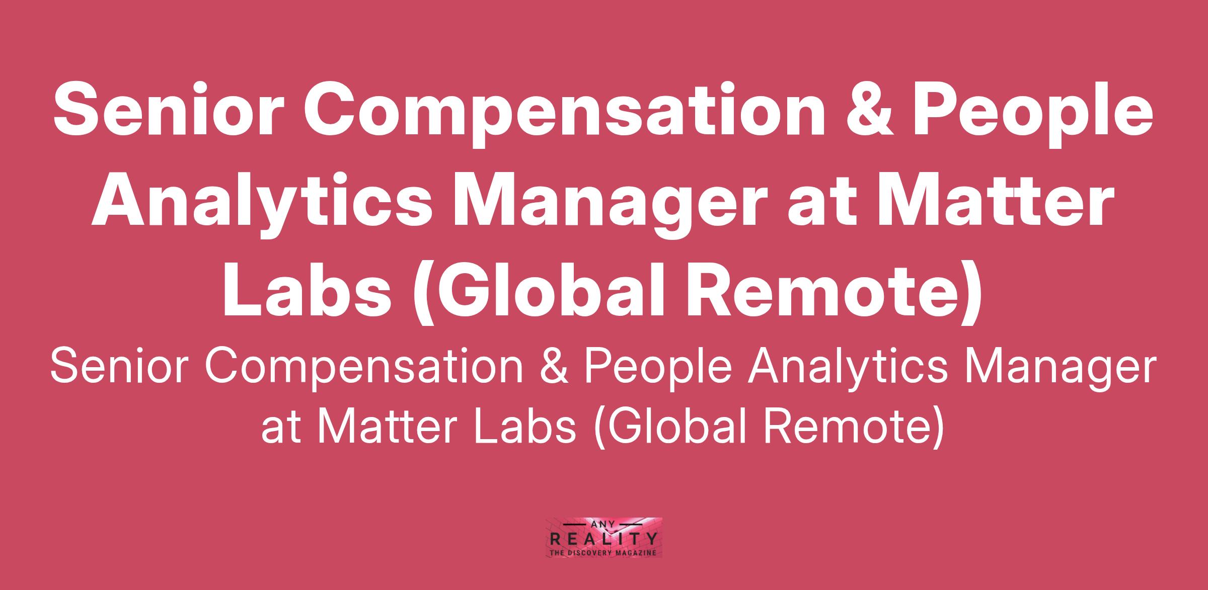 Senior Compensation & People Analytics Manager at Matter Labs (Global Remote)