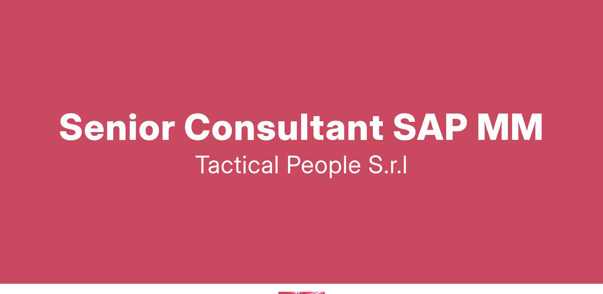 Tactical People, realtà che da più di vent’anni supporta le aziende in progetti di digital trasformation e fa parte di un grande gruppo internazionale, ricerca per una Società del Gruppo focalizzata sull’offerta SAP, un/a Senior Consultant SAP MM. Implementerai soluzioni SAP, in progetti nazionali e internazionali, con l’obiettivo di contribuire ai progetti di integrazione e digitalizzazione dei nostri clienti. Cosa offriamo: • Offriamo un contratto di assunzione a tempo indeterminato con inquadramento e trattamento retributivo adeguati alla seniority. • Opportunità di sviluppare le tue competenze e scoprire le tue attitudini • Ambiente stimolante, in cui le tue idee ed il tuo contributo innovativo sapranno essere valorizzati • Percorso di crescita professionale e retributiva • Smart Working ibrido Luogo: Milano o Padova.