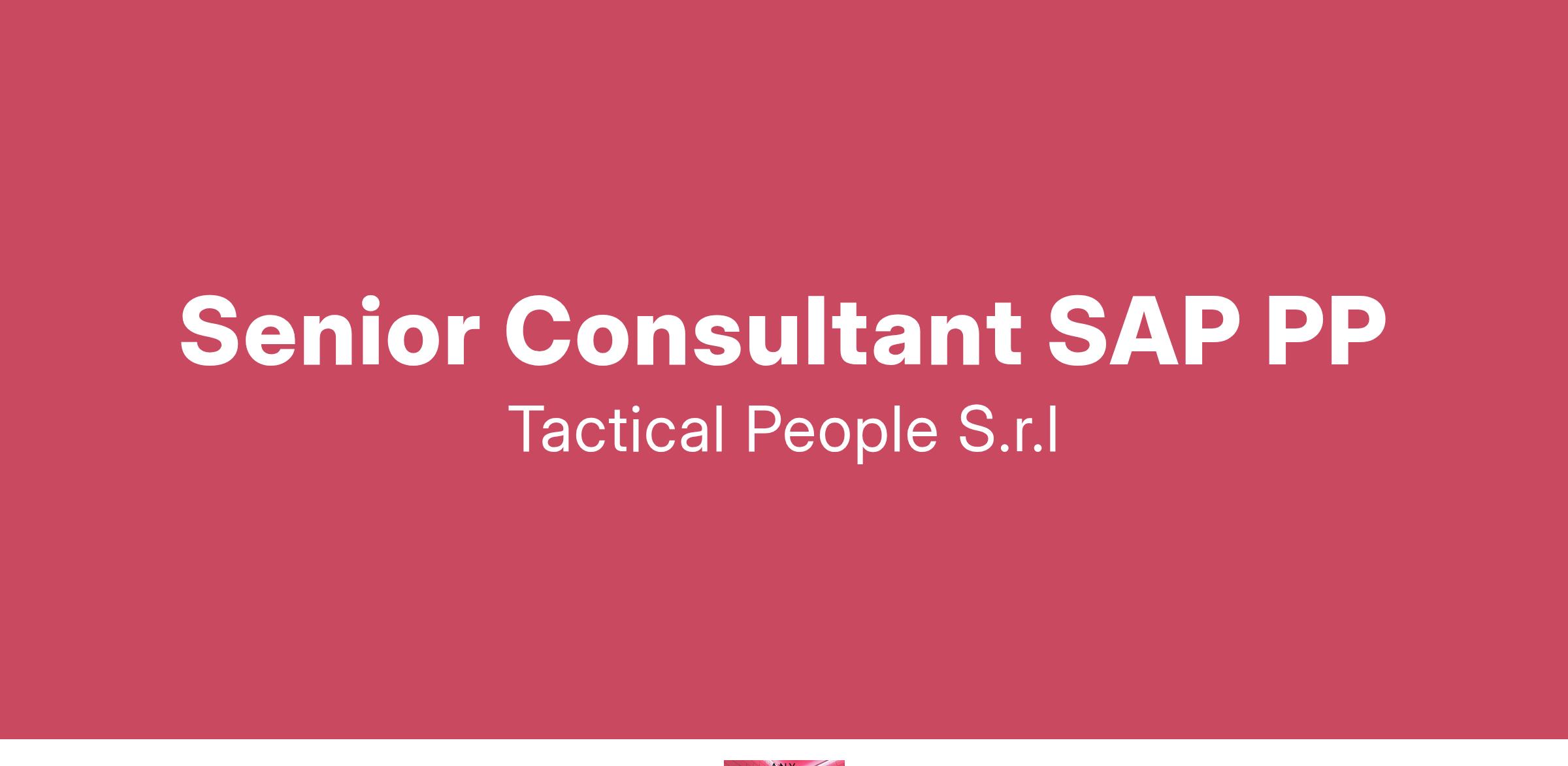 Tactical People, realtà che da più di vent’anni supporta le aziende in progetti di digital trasformation e fa parte di un grande gruppo internazionale, ricerca per una Società del Gruppo focalizzata sull’offerta SAP, un/a Senior Consultant SAP PP. Implementerai soluzioni SAP, in progetti nazionali e internazionali, con l’obiettivo di contribuire ai progetti di integrazione e digitalizzazione dei nostri clienti. Cosa offriamo: • Offriamo un contratto di assunzione a tempo indeterminato con inquadramento e trattamento retributivo adeguati alla seniority. • Opportunità di sviluppare le tue competenze e scoprire le tue attitudini • Ambiente stimolante, in cui le tue idee ed il tuo contributo innovativo sapranno essere valorizzati • Percorso di crescita professionale e retributiva • Smart Working ibrido Luogo: Milano o Padova.