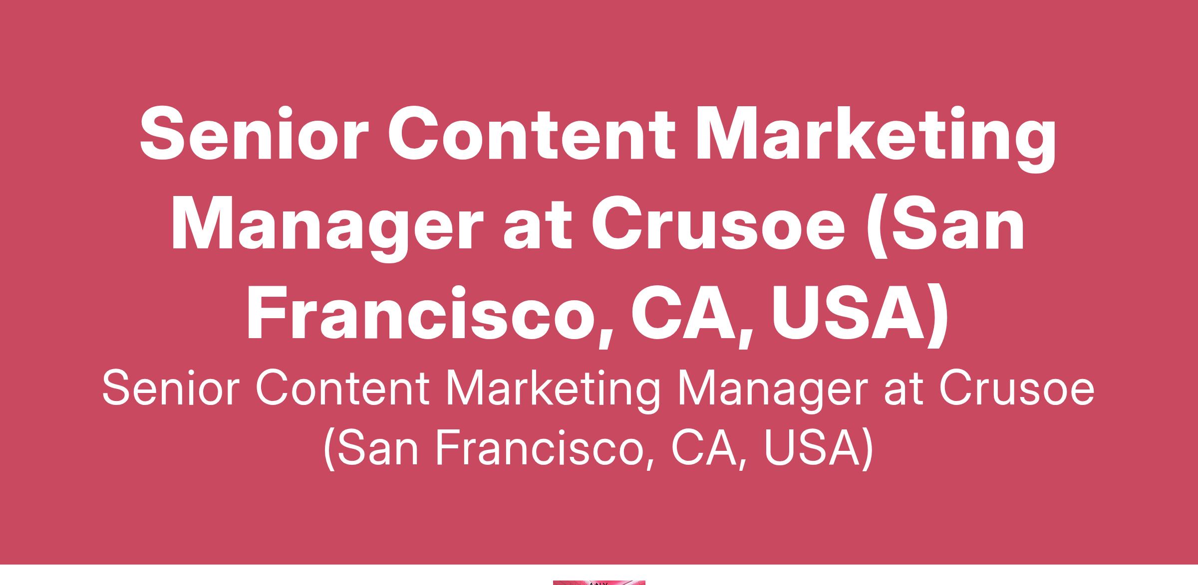 Senior Content Marketing Manager at Crusoe (San Francisco, CA, USA)