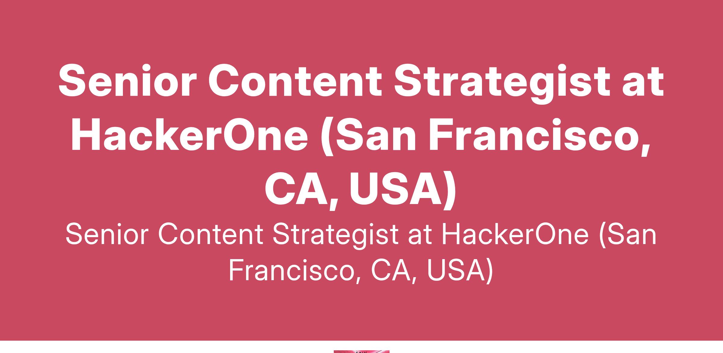 Senior Content Strategist at HackerOne (San Francisco, CA, USA)