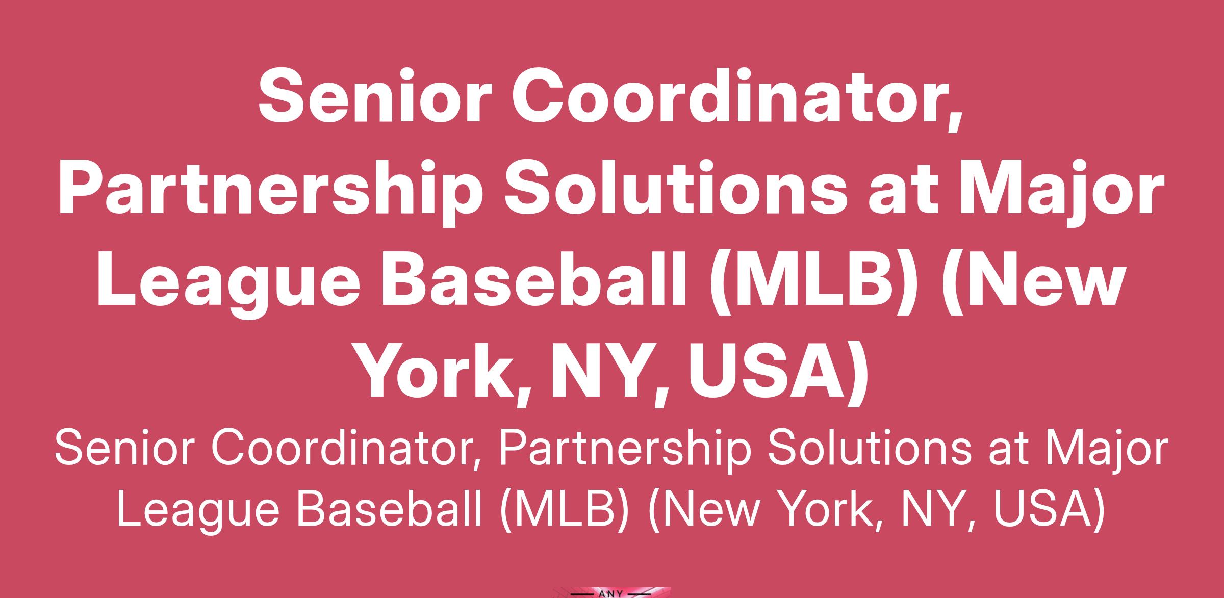 Senior Coordinator, Partnership Solutions at Major League Baseball (MLB) (New York, NY, USA)