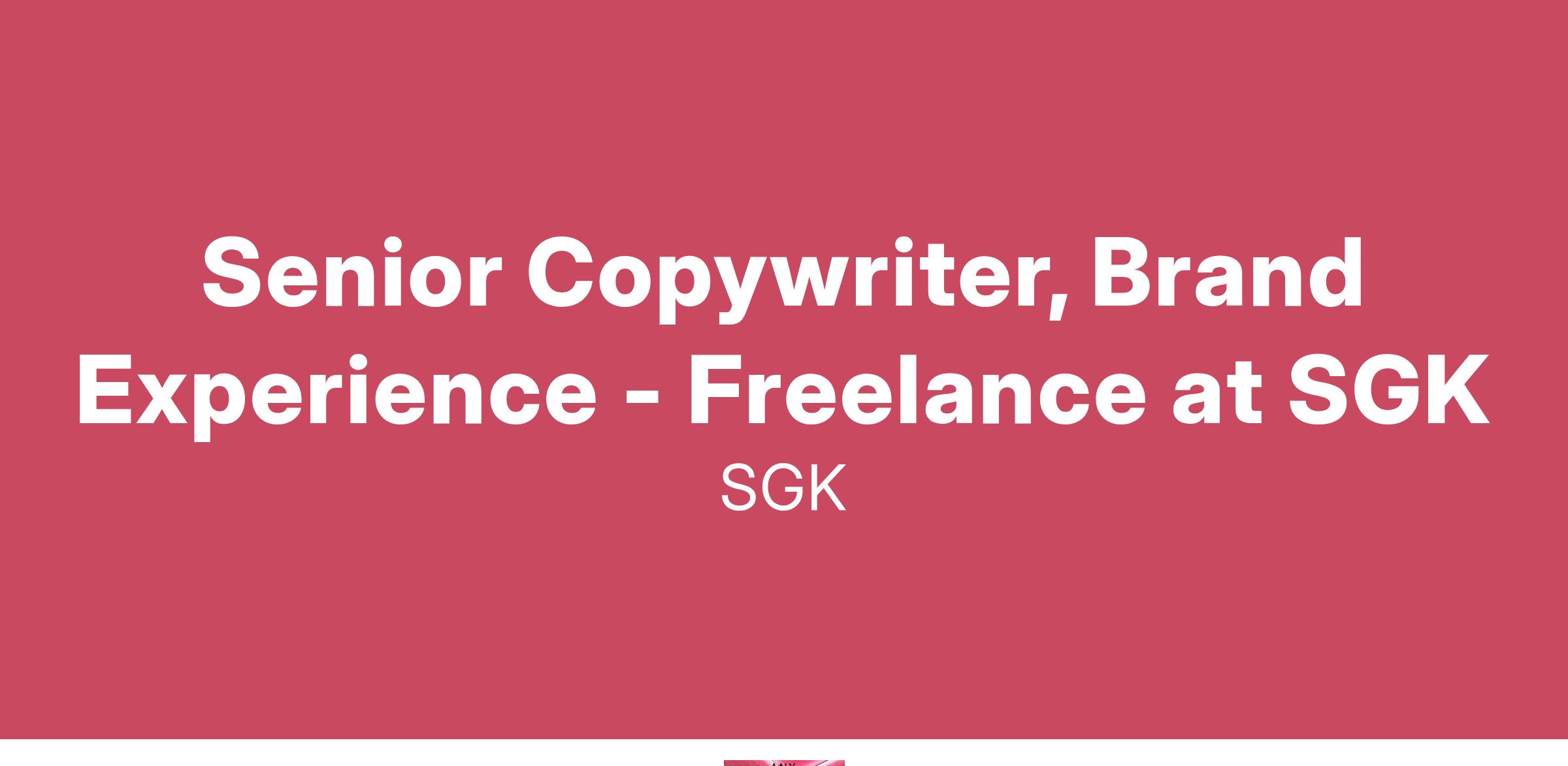 The Senior Copywriter, Brand Experience crafts engaging, original brand and product storytelling for a wide variety of brands, audiences, and channels. Reporting to SGK’s Director of Storytelling, you’ll partner with other teams regularly, collaborating on any number of activations from digital and social media to immersive in-person experiential marketing. You’ll be counted on to provide ACDs and/or CDs with options and ideas in order to inspire, define, and build out large-scale concepts, campaigns, or other client deliverables. Where necessary, you’ll also step in to lead basic- to intermediate-level copy projects, developing on-strategy conceptual approaches for client creative briefs across a range of applications and programs. The ideal candidate has agency or in-house brand marketing experience, a keen eye for detail, and a proven track record of delivering compelling copy for a range of brand voices under tight timelines.