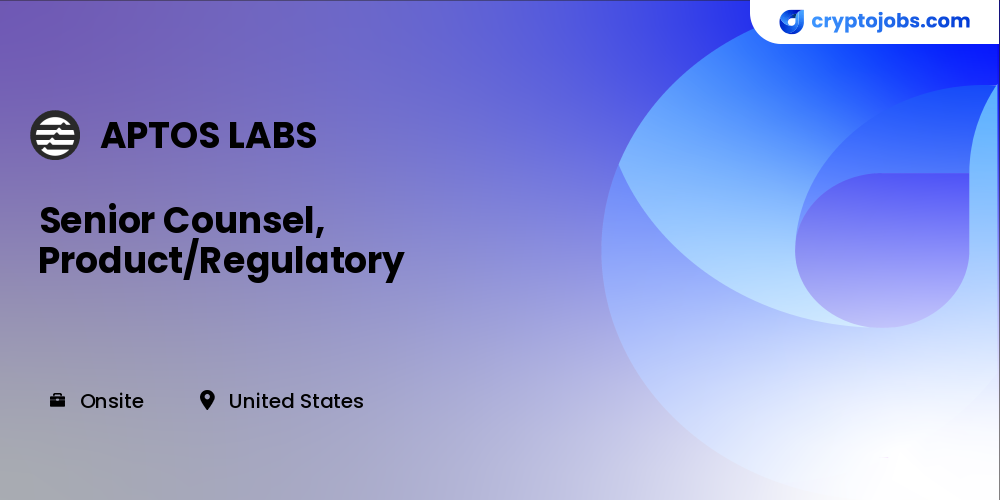 Aptos Labs is looking for an exceptional candidate to serve as Senior Counsel, responsible for supporting product and regulatory legal matters at Aptos Labs. As product/regulatory counsel at Aptos Labs, this role has a broad range of responsibilities and will support the product development and marketing teams, manage regulatory issues across the organization and also advise on legal risks, product launches and business strategies. This is a great opportunity to join a growing legal team and work at the cutting edge of emerging legal issues facing a leading layer 1, proof-of-stake blockchain.