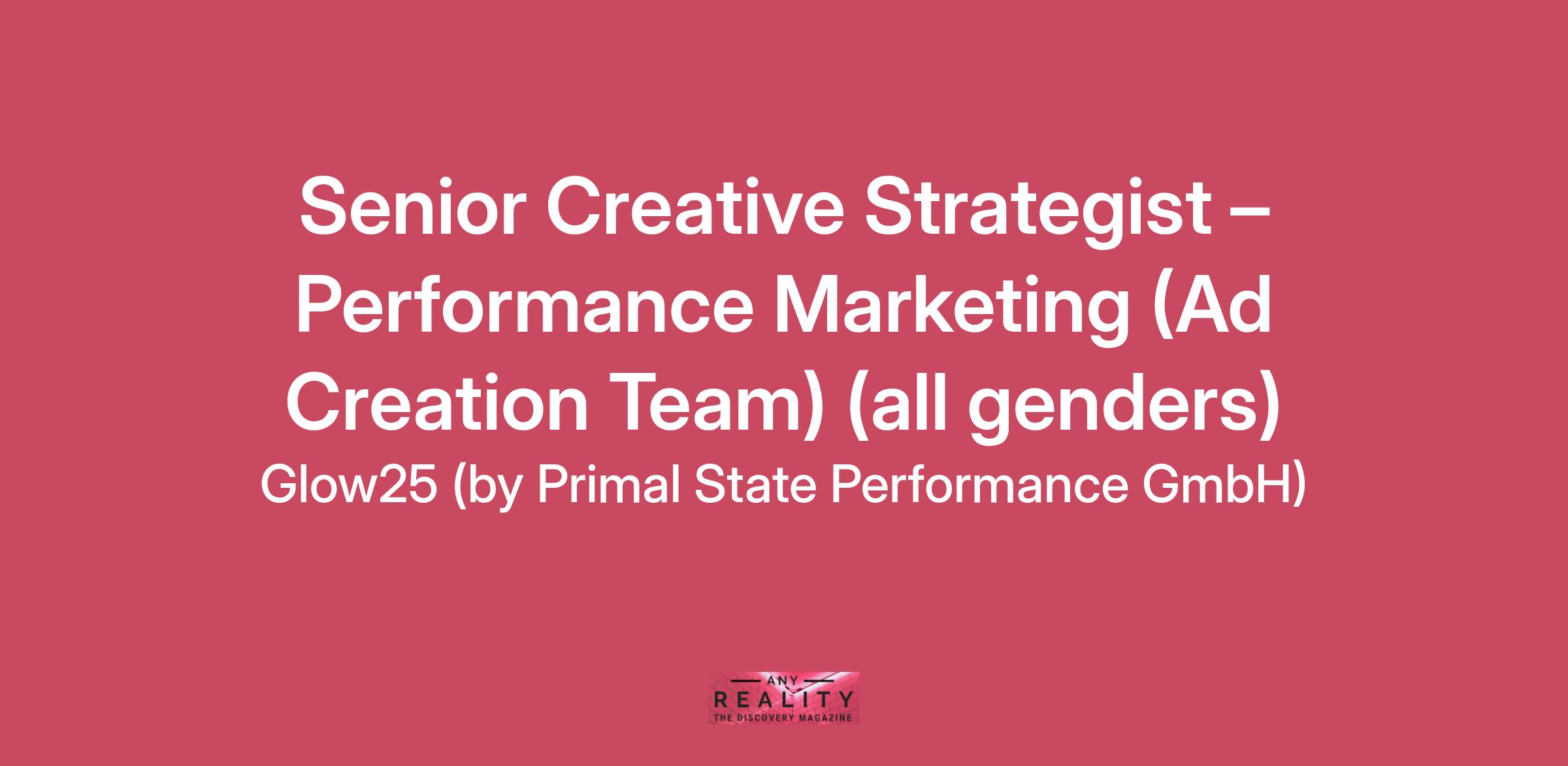 Welcome to Glow25! We are a dynamic, fast-growing beauty and pro-aging company based in Berlin. Our heartfelt mission: Glow moments that last — for our community and for us as a team. Work at Glow25 should inspire, excite, and be fun. That’s why we’re looking for smart, empathetic people who take ownership and grow with us. Join Glow25 and help us redefine beauty. We’re excited to meet you! These are our current challenges and future goals: Senior Creative Strategist in highly autonomous role within the Performance Marketing Ad Creation Team. You craft creative strategies, define acquisition angles, and optimize content across Meta, TikTok, Google/YouTube, Native, and partner page funnels. You collaborate closely with the Team Lead Ad Creation, Performance Marketing, Partner/Advertorial Pages, and the Creative Pod o produce standout assets with strong performance impact. Build for an international-first setup with structured cross-market knowledge transfer and asset sharing across all teams. This is where we need your support: You develop creative strategies, story angles, and messaging frameworks for paid channels and partner pages—spanning short-form and long-form formats, tailored for both video and written content. You translate customer insight s and performance data into innovative, high-converting content ideas. You collaborate with the Team Lead Ad Creation, Performance Marketing, Partner Pages, and the Creative Pod to execute assets end-to-end. You write briefs, scripts, and hooks, and you oversee creative production. You continuously test and optimize content formats based on performance data. You stay ahead of platform trends and identify new opportunities for acquisition content. You own end-to-end project management for creative delivery, business-as-usual and campaign updates, including timelines, stakeholder alignment, and QA. You have the following experience: 5+ years experience in performance-driven creative strategy (ideally D2C/beauty/wellness). Strong understanding of paid social and partner page creative mechanics. Proven track record of high-performing ads and funnel assets. Excellent storytelling, analytical thinking, and briefing skills. Fast, structured, performance-focused working style. That's something you can look forward to: Work flexibly, in the way that suits you best. Work when and where you’re most productive – with flexible hours and smart time tracking. Home office? Done right. We’ve got you covered: receive a one-time €500 allowance to set up your perfect workspace. Fully equipped from day one. Mac or Windows – you choose what works best for you. Glow Card – your monthly treat. Get €50 every month to spend however you like – that’s €600 a year, just because. Learning is part of the deal. Whether it’s our Glowcademy, dedicated learning time, or personal development support – we invest in you, not just in numbers. Let’s Glow! Enjoy 40% off our entire product range – yes, everything. Take a break – you’ve earned it. 30 vacation days + 1 personal holiday + up to 10 additional unpaid days off when you need a real reset. Oh, and New Year’s Eve? That’s a day off too! Stay healthy, stay glowing. Our company health insurance reimburses up to €600 per year for extras like vision aids, alternative medicine, or dental cleanings. Thinking ahead. After your probation period, we’ll contribute €600 toward your pension plan – and if you add more, we’ll top it up with an extra 20%. Exclusive partner perks. Get access to discounts and special offers from top brands through our corporate benefit platforms. Team spirit to go. Our Glow25 merch is more than just fabric – it’s your badge of belonging. Culture that truly shines. For five years in a row, we’ve been recognized as a Top Company on Kununu - proof of the strong, positive, and genuine culture we live every day. Yay! You've made it this far! But there’s one more thing we want to say: Don’t hesitate! Especially if you’re a woman, or from an underrepresented group. Even if you don’t check every box, we want to encourage you to apply anyway. We believe that a diverse range of perspectives and experiences makes a team stronger – and the stronger our team is, the better we can fulfil our mission of helping people bring more energy into their daily lives.