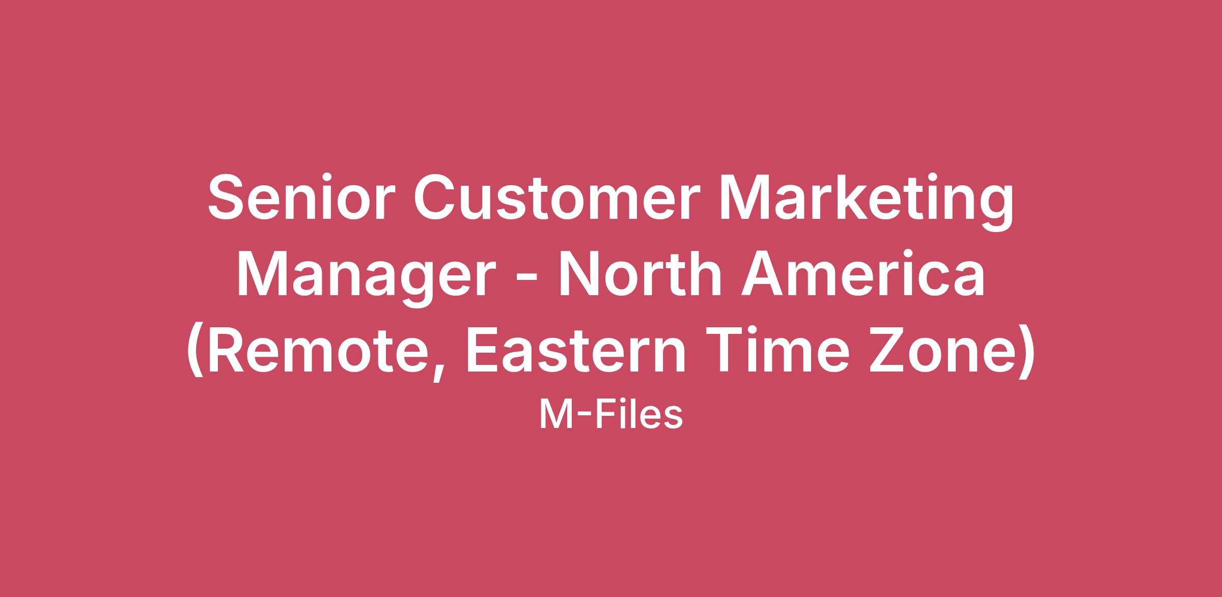 Senior Customer Marketing Manager - North America (Remote, Eastern Time Zone)