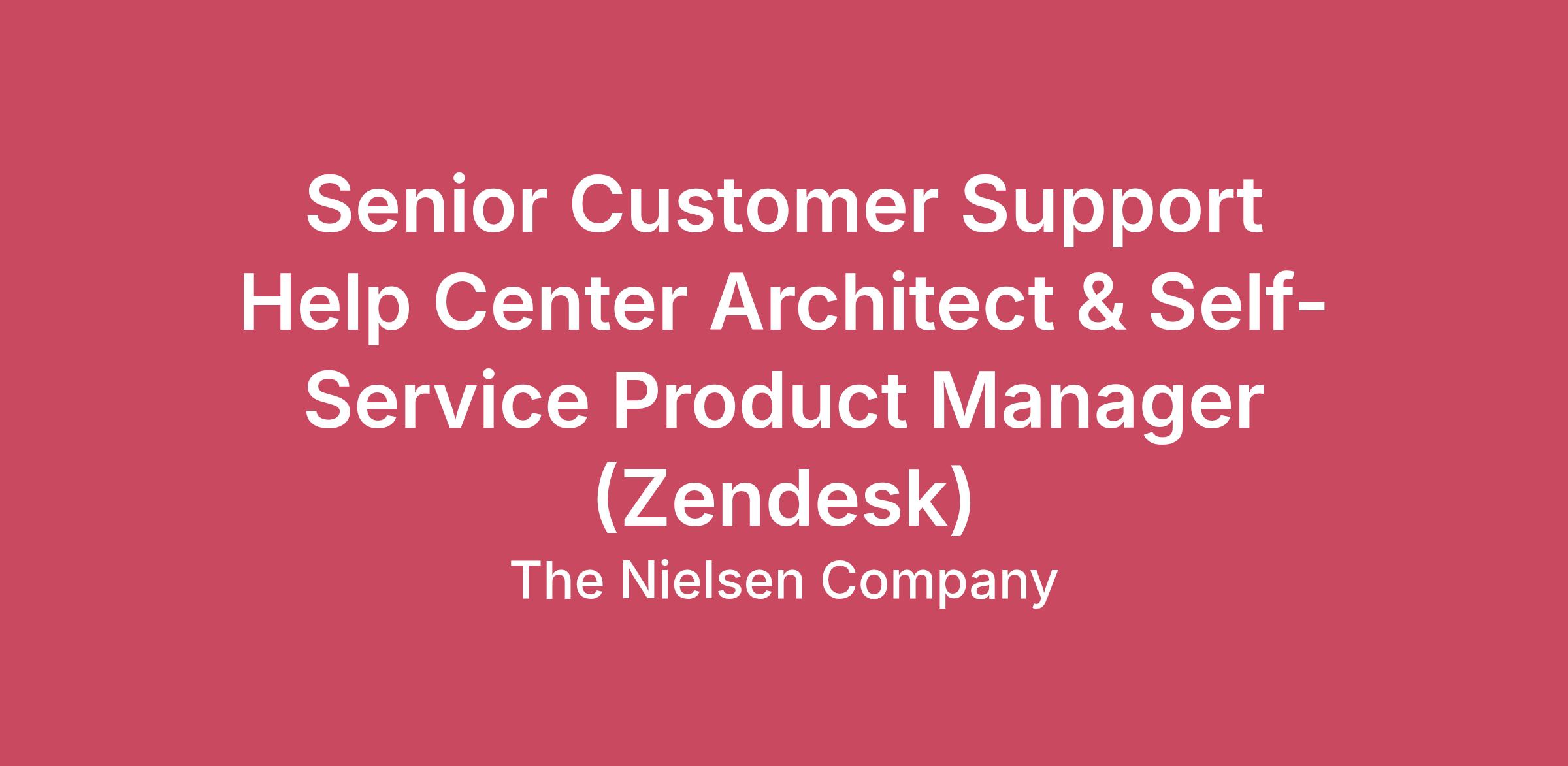 Senior Customer Support Help Center Architect & Self-Service Product Manager (Zendesk)