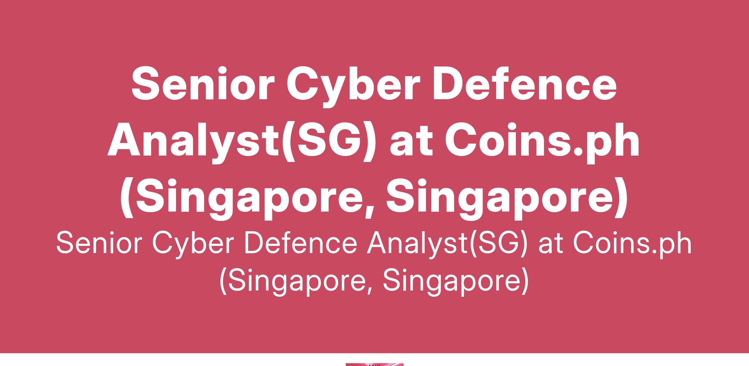 Senior Cyber Defence Analyst(SG) at Coins.ph (Singapore, Singapore)