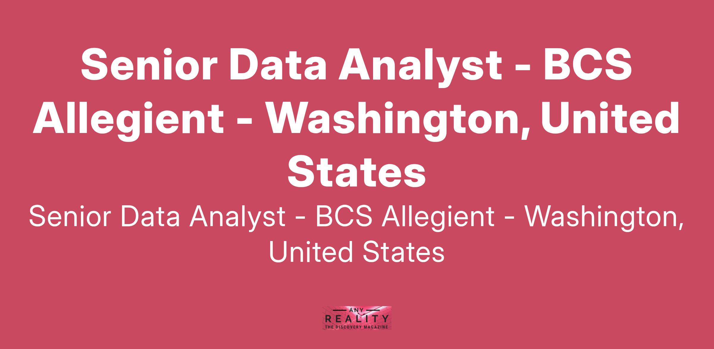 Allegient Defense (DBA BCS Allegient) provides technically oriented services from program management to advanced systems integration and engineering. We support Government and prime system integrators with engineering and management expertise. Allegient Defense helps clients with challenging Science & Technology, Engineering Acquisition, and Program Management Mission requirements. Allegient Defense is a leader in advanced technology research and solutions development, and we are growing quickly. We are looking to hire a Senior Data Analyst.
