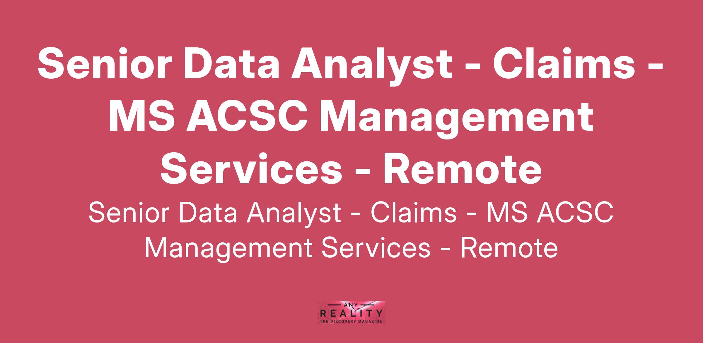 Senior Data Analyst - Claims