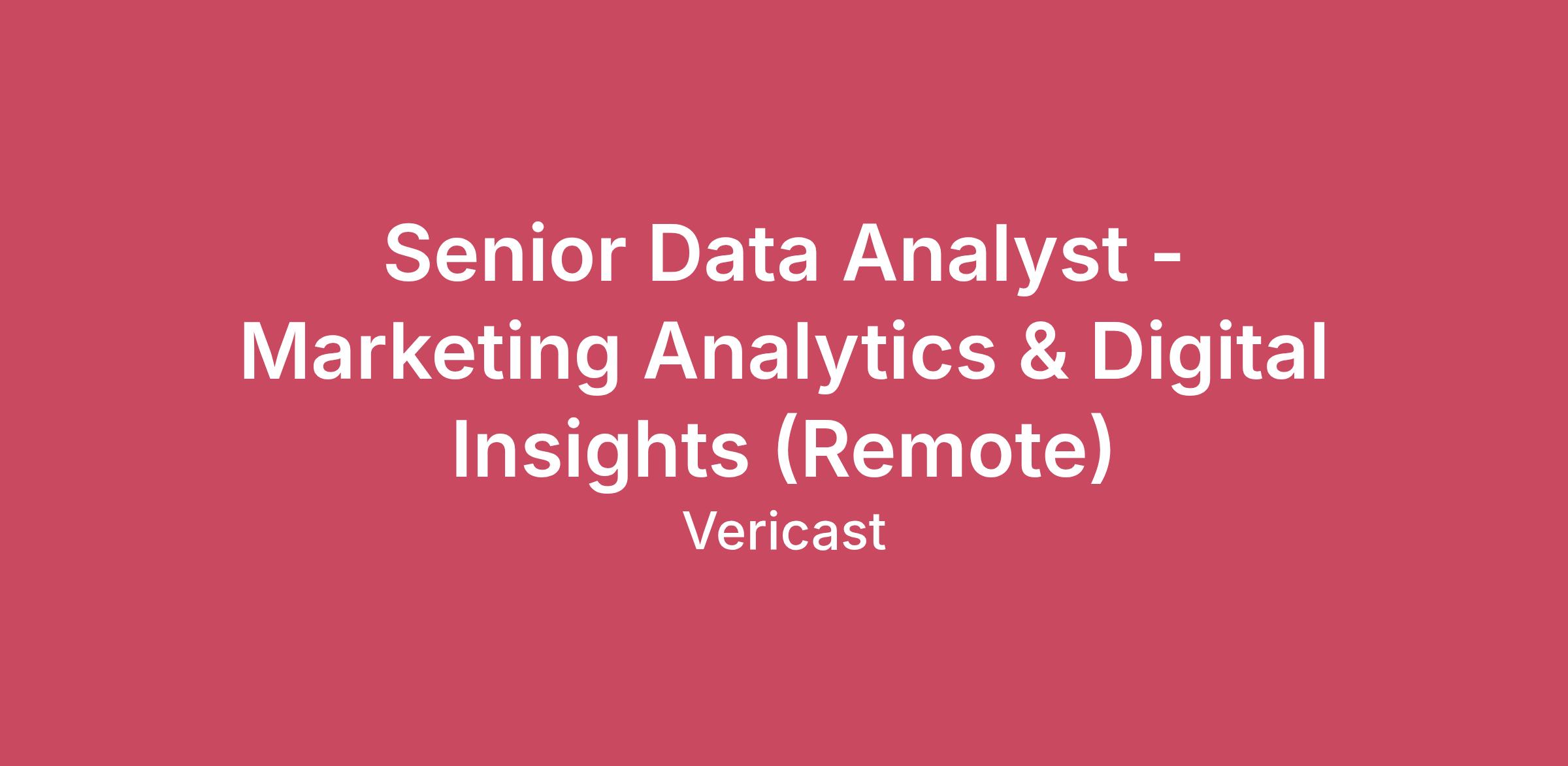 Senior Data Analyst - Marketing Analytics & Digital Insights (Remote)