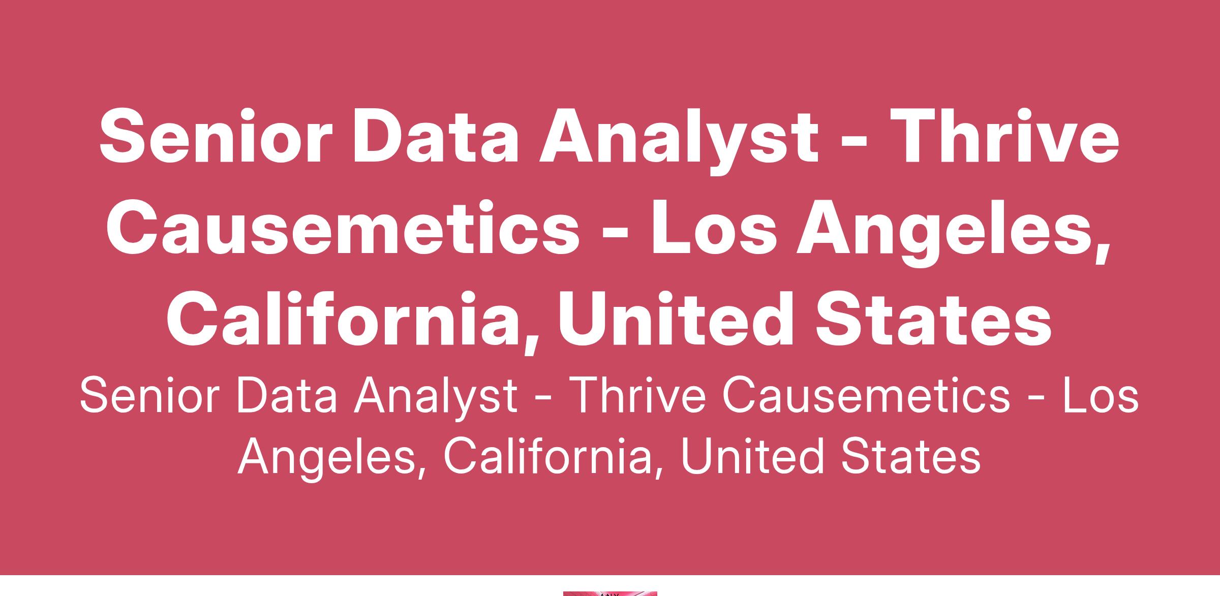 Thrive Causemetics is searching for a motivated and analytical Senior Data Analyst to join our team. This role will blend data analysis and business intelligence to drive actionable insights across marketing, customer success, customer retention, and product analysis. We need someone with strong analytical chops, expertise in Python, and a passion for empowering others through data.