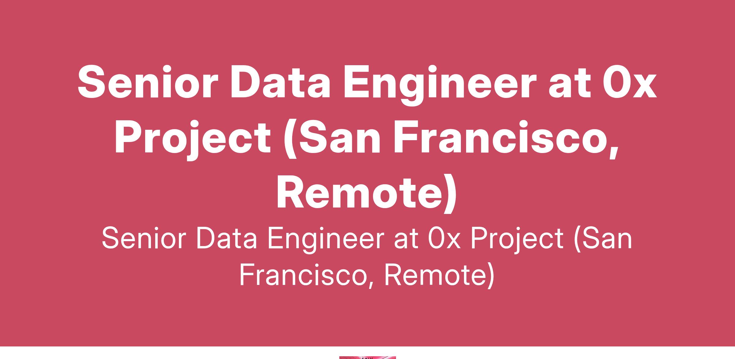 Senior Data Engineer at 0x Project (San Francisco, Remote)