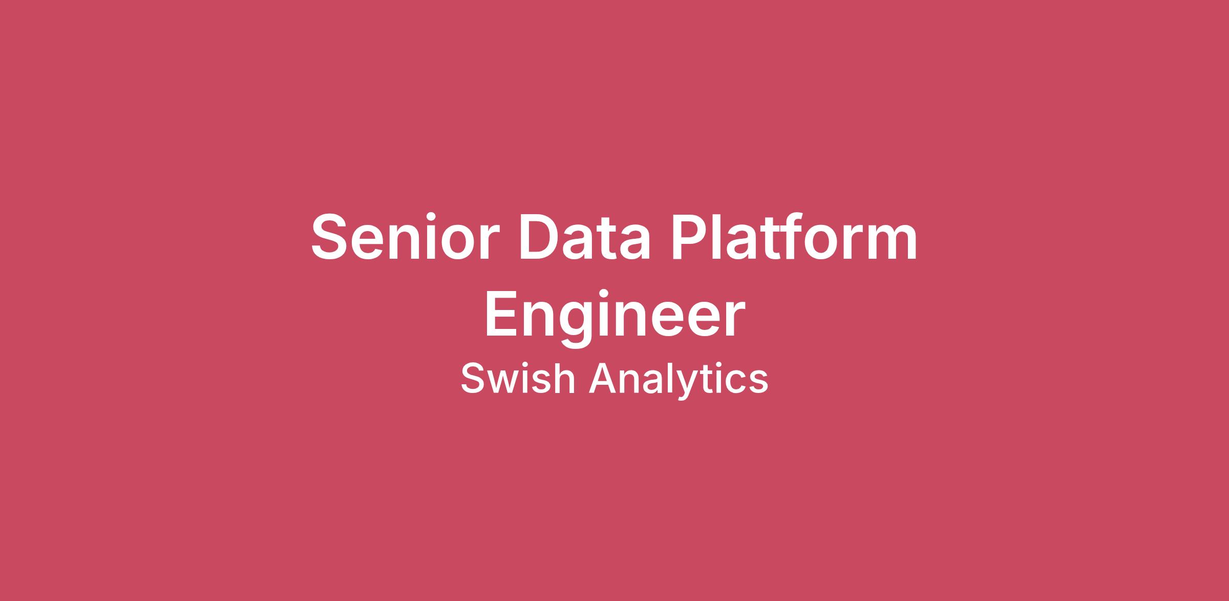 The Swish Analytics team is seeking a Senior Data Platform Engineer to have a direct impact on the data infrastructure of our core consumer and enterprise data offerings. We’re a team passionate about accurate predictions and real-time data, and hope you find satisfaction in building new products with the latest and greatest technologies. This is a remote position.