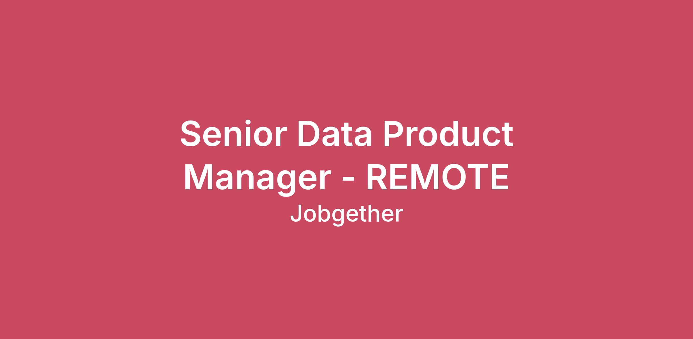 Senior Data Product Manager - REMOTE