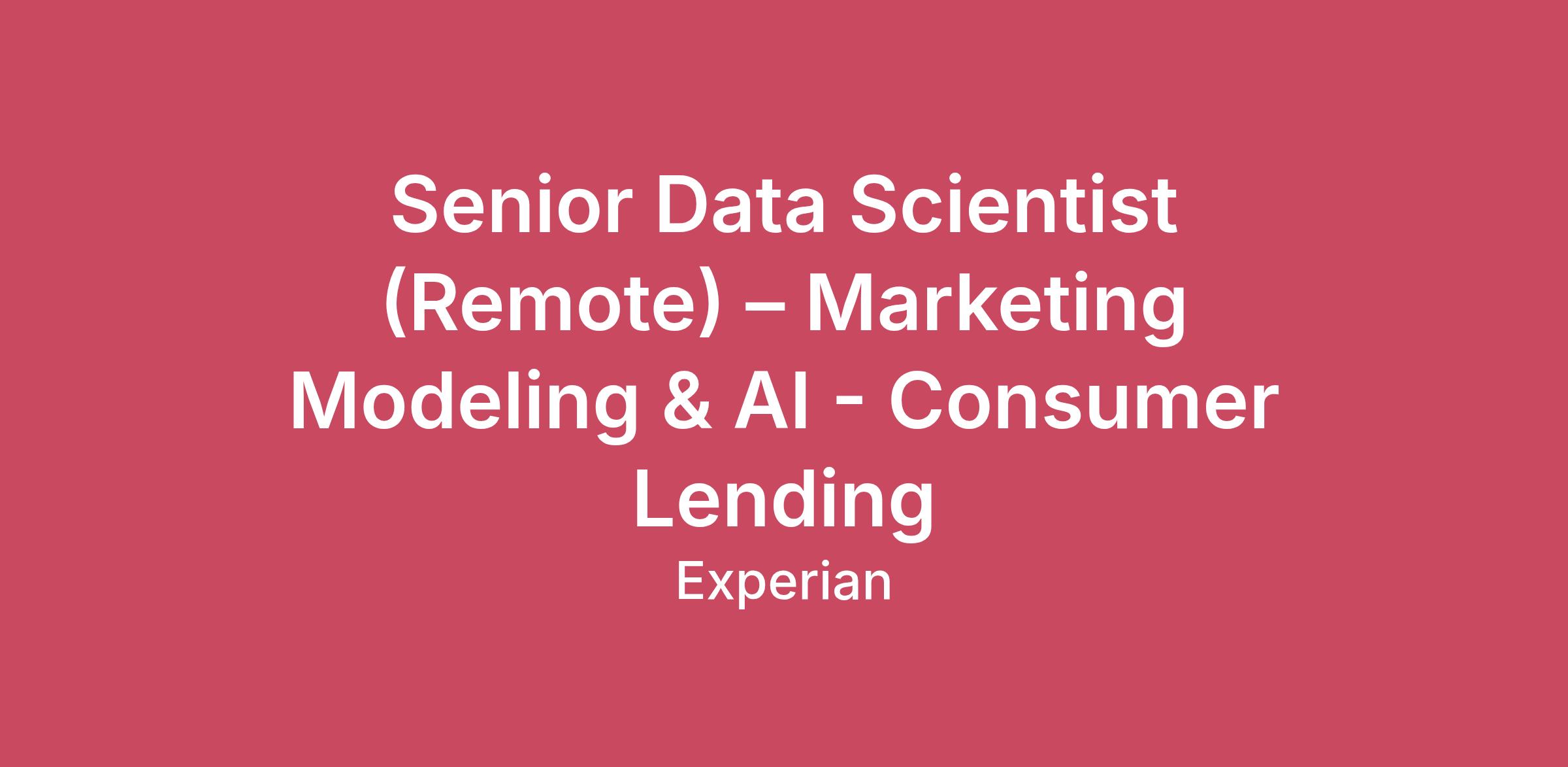Company DescriptionExperian is a global data and technology company, powering opportunities for people and businesses around the world. We help to redefine lending practices, uncover and prevent fraud, simplify healthcare, create marketing solutions, and gain deeper insights into the automotive market, all using our unique combination of data, analytics and software. We also assist millions of people to realize their financial goals and help them save time and money.We operate across a range of markets, from financial services to healthcare, automotive, agribusiness, insurance, and many more industry segments.We invest in people and new advanced technologies to unlock the power of data. As a FTSE 100 Index company listed on the London Stock Exchange (EXPN), we have a team of 22,500 people across 32 countries. Our corporate headquarters are in Dublin, Ireland. Learn more at experianplc.com.Job DescriptionExperian is looking for an experienced Senior AI Data Scientist to join our Analytic Innovations group. This individual contributor role will focus on developing agentic AI solutions and advanced marketing analytics models that move strategic decision-making across the consumer credit lifecycle. You will have deep technical expertise in coding intelligent agents, experience in marketing analytics for consumer lending products, with modeling knowledge, plus experience applying AI to real-world challenges in financial services. This is a fully remote position and you will be reporting to the VP, Analytics ConsultingYou Will Be Working On:Design, code, and test AI agents that support autonomous decision-making in marketing campaigns, customer acquisition, and portfolio optimization.Apply hands-on coding knowledge to create agentic AI techniques to solve complex business problems in consumer lending.Conduct exploratory data analysis and develop predictive models using credit bureau data and other consumer datasets.Prototype and improve on intelligent agent behaviors using Python, Spark and modern agentic frameworks.Support the deployment and monitoring of AI models in production environments, ensuring performance, reliability and compliance.Collaborate with company partners to translate our requirements into scalable AI solutions.Contribute to the development of new analytical products and services that enhance marketing effectiveness and customer engagement.Qualifications 3+ years building predictive models for marketing decisioning (propensity/response/uplift/NBA), in consumer lending or credit card portfolios.Hands-on experience designing and coding agentic AI systems (tool use/function calling, multi-step planning, orchestration) to automate analytics or decision workflows.Advanced Python proficiency (3+years) with production-quality coding practicesExperience working with large-scale data using Spark (PySpark), SQL, and distributed compute to build features and train models.Build agentic prototypes quickly and iterate using modern frameworks (e.g., LangChain/LangGraph, Semantic Kernel, AutoGen, or similar)Bachelor's degree in a quantitative or related field required; Master's (or equivalent advanced experience)Benefits/Perks:Great compensation package and bonus planCore benefits including medical, dental, vision, and matching 401KFlexible work environment, ability to work remote, hybrid or in-officeFlexible time off including volunteer time off, vacation, sick and 12-paid holidaysExplore all our exciting benefits here: https://yourexperianbenefits.com/cand-index.htmlAdditional InformationOur uniqueness is that we celebrate yours. Experian's culture and people are important differentiators. We take our people agenda very seriously and focus on what matters; DEI, work/life balance, development, authenticity, collaboration, wellness, reward & recognition, volunteering... the list goes on. Experian's people first approach is award-winning; World's Best Workplaces™ 2024 (Fortune Top 25), Great Place To Work™ in 24 countries, and Glassdoor Best Places to Work 2024 to name a few. Check out Experian Life on social or our Careers Site to understand why.Experian is proud to be an Equal Opportunity and Affirmative Action employer. Innovation is an important part of Experian's DNA and practices, and our diverse workforce drives our success. Everyone can succeed at Experian and bring their whole self to work, irrespective of their gender, ethnicity, religion, colour, sexuality, physical ability or age. If you have a disability or special need that requires accommodation, please let us know at the earliest opportunity.Employee Status: RegularRole Type: HomeJob Posting - Salary Range: $100,649 - $174,459Department: AnalyticsSchedule: Full Time