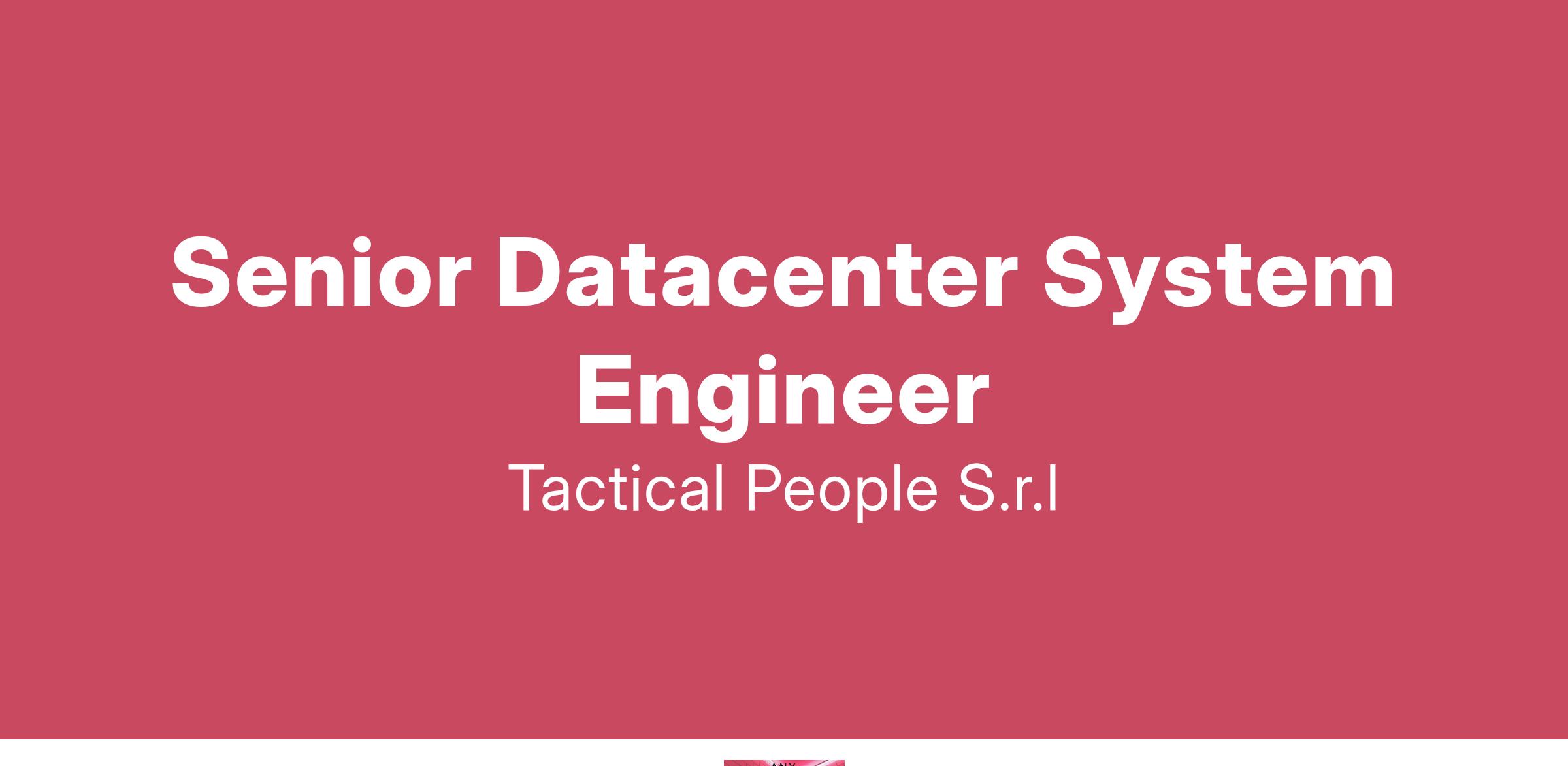 Unisciti a TACTICAL PEOPLE: Innovazione, Persone e Crescita nel Cuore della Digital Transformation Da oltre 20 anni, TACTICAL PEOPLE si posiziona come leader nel mercato ICT, guidando con passione e competenza i nostri clienti di medie e grandi dimensioni attraverso il dinamico percorso della digital transformation. La nostra mission è chiara: non solo abbracciare il cambiamento tecnologico, ma guidarlo, creando soluzioni all'avanguardia che plasmino il futuro digitale. In TACTICAL PEOPLE, crediamo fortemente nel mettere le persone al centro di ogni nostra iniziativa. Le persone sono il cuore pulsante della nostra azienda; il loro benessere, la loro crescita e il loro sviluppo sono la nostra priorità. Ci impegniamo a condividere le strategie aziendali con trasparenza e a fornire formazione e supporto a ogni livello, garantendo che ogni membro del team sia equipaggiato per eccellere e innovare. Stiamo cercando individui che condividano la nostra visione, che siano guidati dalla passione per la tecnologia e che desiderino essere protagonisti nella costruzione di un futuro digitale più luminoso. Se sei pronto a far parte di una squadra che valorizza il talento, incoraggia la crescita personale e professionale e lavora in prima linea nel settore della digital transformation, TACTICAL PEOPLE è il posto giusto per te. Posizione Aperta: Senior Datacenter System Engineer Sede: ibrido con presenza su Sesto Fiorentino, Viaggi brevi all’estero richiesti. Descrizione del ruolo: Il candidato ideale deve almeno 5-7 anni su implementazione di soluzioni di sicurezza informatica e sistemi cloud. Cosa offriamo: Inserimento immediato in una Tech Community giovane e dinamica. TACTICAL LEARNING HUB, con corsi di aggiornamento e formazione. Il presente annuncio è rivolto ad entrambi i sessi, ai sensi delle leggi 903/77 e 125/91, e a persone di tutte le età e tutte le nazionalità, ai sensi dei decreti legislativi 215/03 e 216/03. I curricula dovranno pervenire completi di dicitura che autorizza il trattamento dei propri dati: “Si autorizza al trattamento dei dati personali ai sensi del D. Lgs. 196/2003.