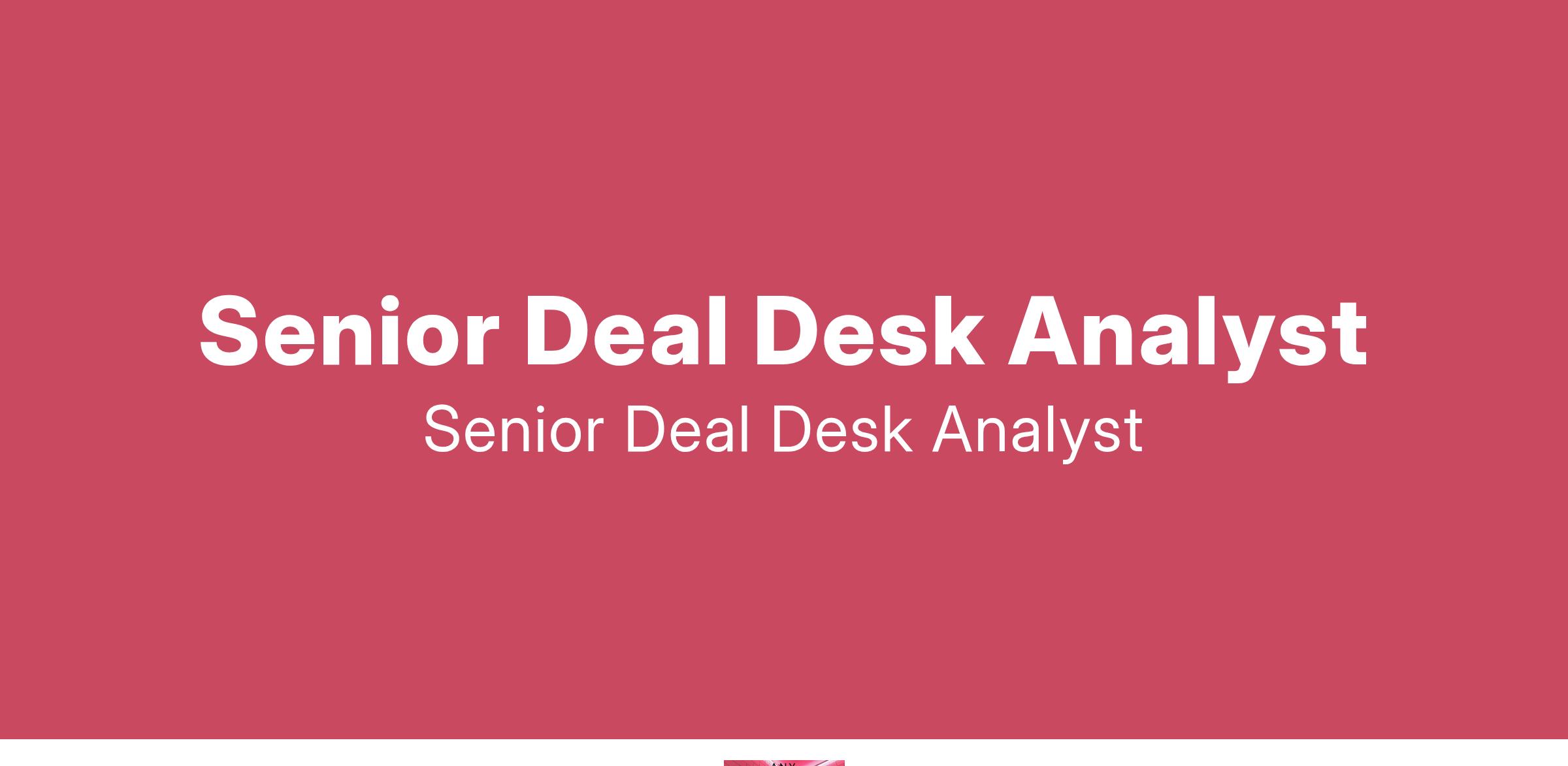 We are looking for a Senior Deal Desk Analyst to join our Deal Operations team to drive efficiencies in our quote-to-cash process. This role will work directly with the Sales organization by providing a high level of service with integrity, urgency, and responsiveness. An ideal candidate will have a desire to work in a role that is continuously evolving as our organization grows.