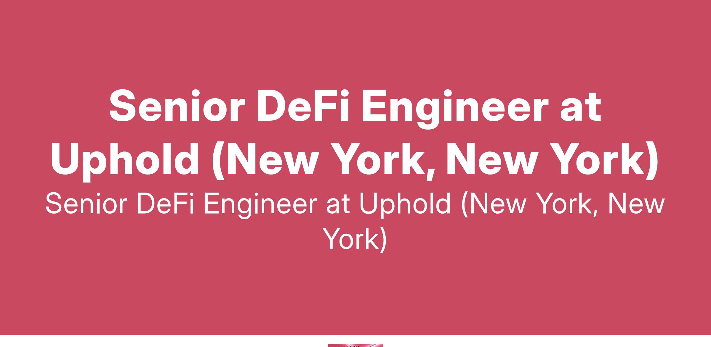 Senior DeFi Engineer at Uphold (New York, New York)