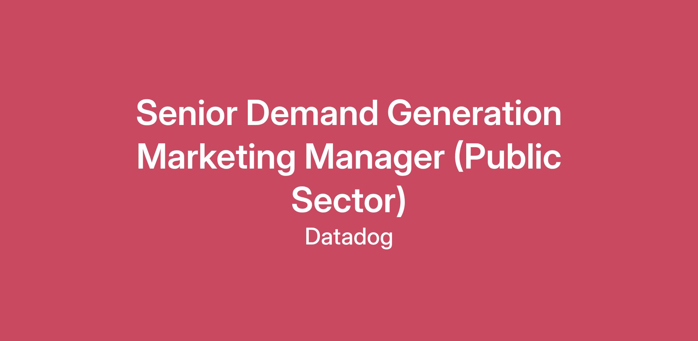 Datadog is looking for a strategic and results-oriented Senior Demand Generation Marketing Manager to lead full-funnel campaign execution for our Public Sector business. In this highly cross-functional role, you’ll partner closely with Product Marketing, Sales, and Field Marketing to drive pipeline across Federal (Civilian & DoD), State and Local Government, and Education (SLED) markets. You’ll own and scale the digital and demand engine for the Public Sector vertical, from high-touch ABM to broad digital programs. This is a unique opportunity to shape how Datadog reaches and engages government decision-makers in a highly regulated, high-impact space. What You’ll Do: Own and execute full-funnel integrated campaigns (paid, owned, earned) aligned to the buyer’s journey across Public Sector segments Lead co-branded demand generation efforts with partners and distributors, including joint webinars and lead-gen programs Build digital amplification strategies to support Field Marketing, driving event traffic and accelerating follow-up for Datadog-led and third-party events Design and scale Account-Based Marketing (ABM) programs targeting key agencies and regulated verticals Analyze performance data from SFDC and BI tools to optimize lead-to-opportunity conversion and share insights with stakeholders Manage and optimize paid media spend (LinkedIn and others) to reach government decision-makers using tailored and compliant targeting strategies Collaborate with web and creative teams to develop high-performing landing pages and digital assets Who You Are: 10+ years of experience leading demand generation programs across webinars, ABM, paid advertising, and integrated campaigns 4–5 years running high-profile campaigns across multiple channels with proven results Strong communicator with the ability to influence cross-functional teams and senior stakeholders Self-starter who thrives in fast-paced, evolving environments Experience managing ad spend across platforms like LinkedIn and Google, with a focus on ROI and conversion metrics Proficient with BI tools, Salesforce, and marketing platforms such as Marketo Bonus Points: Experience with government-specific targeting tools (e.g., domain/IP-based targeting)End-to-end management of webinar programs and third-party digital events Familiarity with co-marketing programs involving Cloud Service Providers or System Integrators Strategic understanding of how digital marketing supports Field and Event initiatives Creative mindset and passion for campaign ideation and brand storytelling Datadog values people from all walks of life. We understand not everyone will meet all the above qualifications on day one. That's okay. If you’re passionate about technology and want to grow your skills, we encourage you to apply. Benefits and Growth: Generous and competitive benefits package New hire stock equity (RSUs) and employee stock purchase plan Continuous career development and pathing opportunities Employee-focused best in class onboarding Internal mentor and cross-departmental buddy program Friendly and inclusive workplace culture Benefits and Growth listed above may vary based on the country of your employment and the nature of your employment with Datadog.Datadog offers a competitive salary and equity package, and may include variable compensation. Actual compensation is based on factors such as the candidate's skills, qualifications, and experience. In addition, Datadog offers a wide range of best in class, comprehensive and inclusive employee benefits for this role including healthcare, dental, parental planning, and mental health benefits, a 401(k) plan and match, paid time off, fitness reimbursements, and a discounted employee stock purchase plan.The reasonably estimated yearly salary for this role at Datadog is:$125,000—$167,000 USD About Datadog: Datadog (NASDAQ: DDOG) is a global SaaS business, delivering a rare combination of growth and profitability. We are on a mission to break down silos and solve complexity in the cloud age by enabling digital transformation, cloud migration, and infrastructure monitoring of our customers’ entire technology stacks. Built by engineers, for engineers, Datadog is used by organizations of all sizes across a wide range of industries. Together, we champion professional development, diversity of thought, innovation, and work excellence to empower continuous growth. Join the pack and become part of a collaborative, pragmatic, and thoughtful people-first community where we solve tough problems, take smart risks, and celebrate one another. Learn more about #DatadogLife on Instagram, LinkedIn, and Datadog Learning Center. Equal Opportunity at Datadog: Datadog is proud to offer equal employment opportunity to everyone regardless of race, color, ancestry, religion, sex, national origin, sexual orientation, age, citizenship, marital status, disability, gender identity, veteran status, and other characteristics protected by law. We also consider qualified applicants regardless of criminal histories, consistent with legal requirements. Here are our Candidate Legal Notices for your reference. Datadog endeavors to make our Careers Page accessible to all users. If you would like to contact us regarding the accessibility of our website or need assistance completing the application process, please complete this form. This form is for accommodation requests only and cannot be used to inquire about the status of applications. Privacy and AI Guidelines: Any information you submit to Datadog as part of your application will be processed in accordance with Datadog’s Applicant and Candidate Privacy Notice. For information on our AI policy, please visit Interviewing at Datadog AI Guidelines.