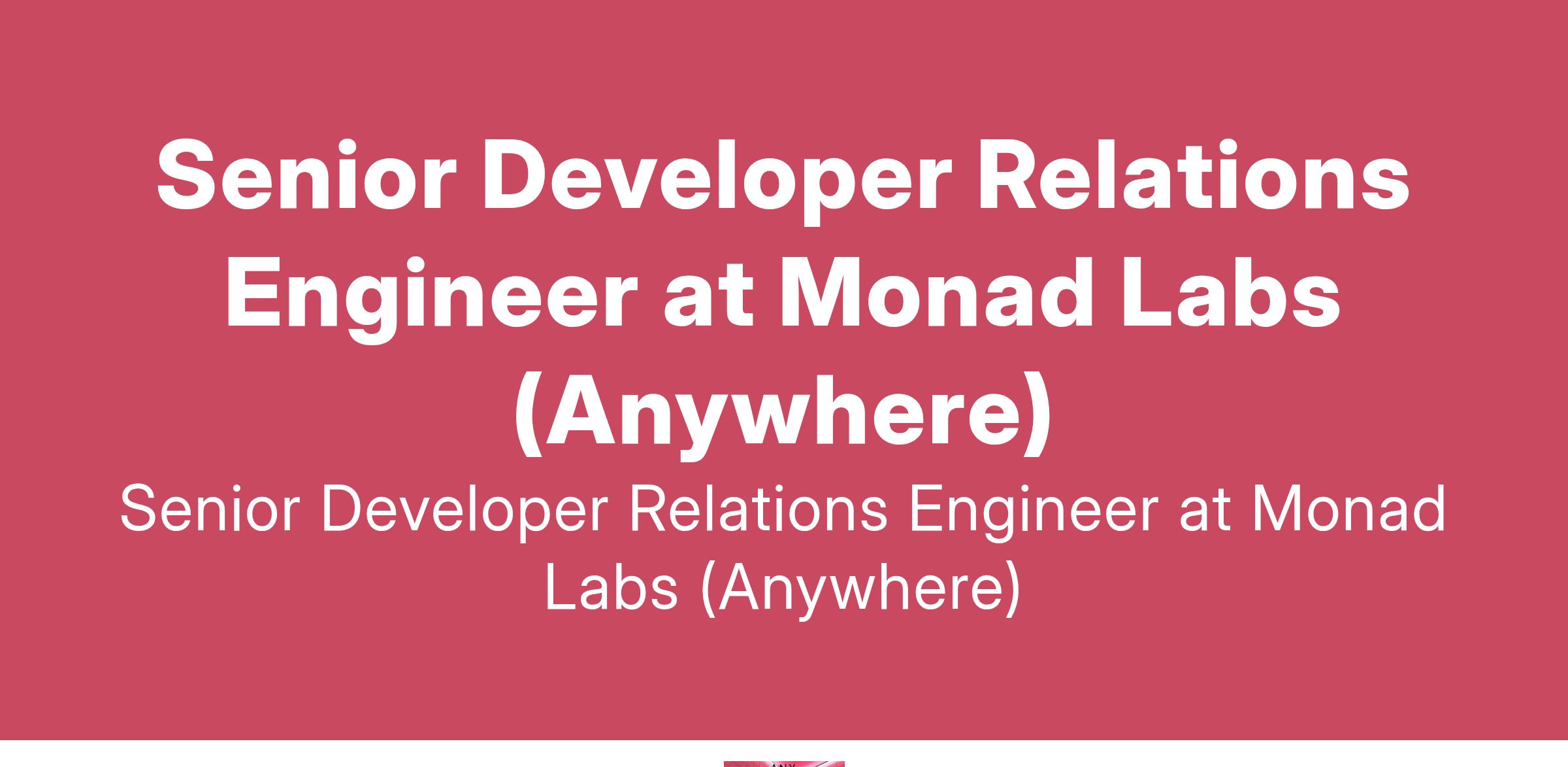 Senior Developer Relations Engineer at Monad Labs (Anywhere)