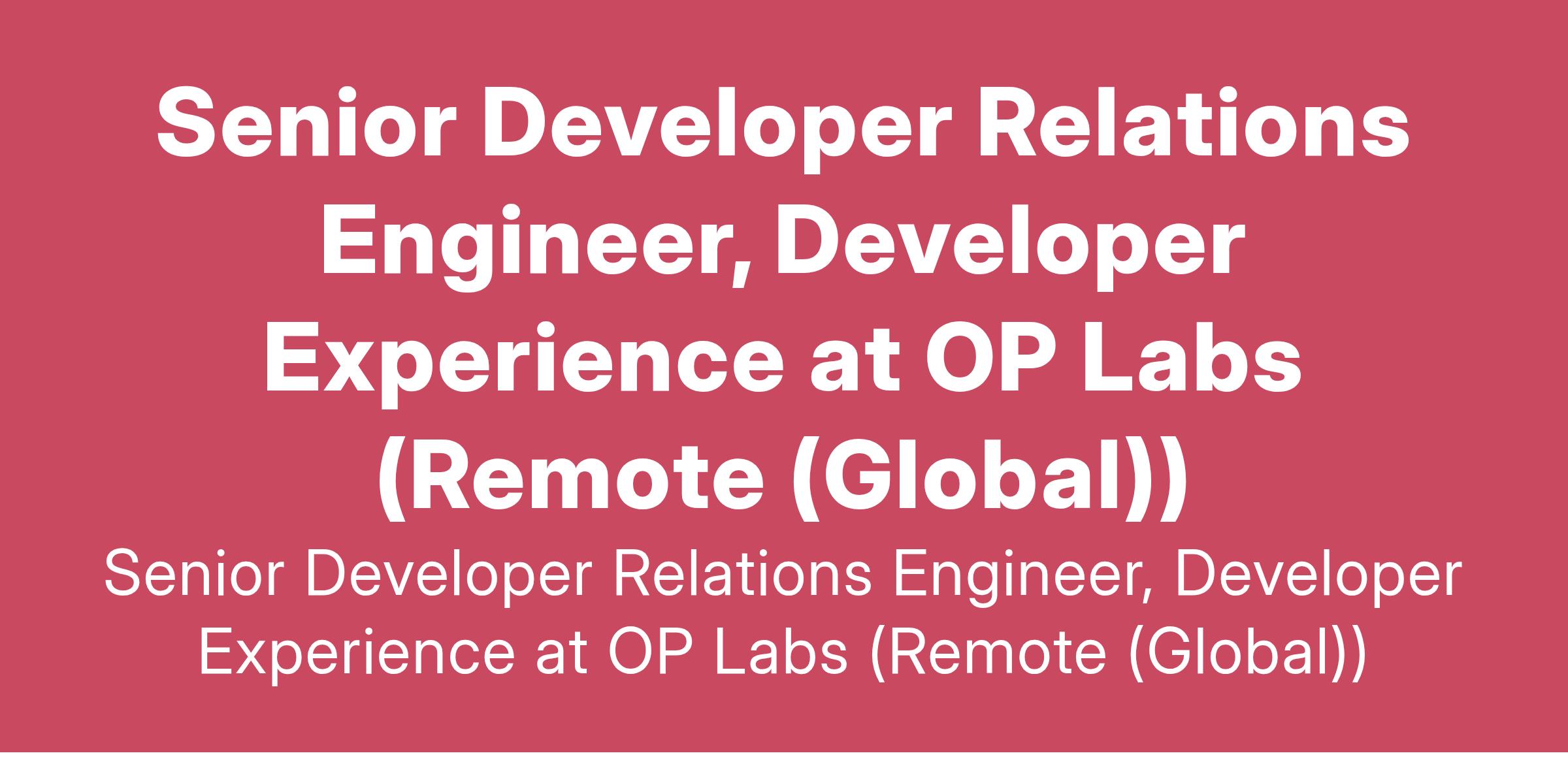 Senior Developer Relations Engineer, Developer Experience at OP Labs (Remote (Global))