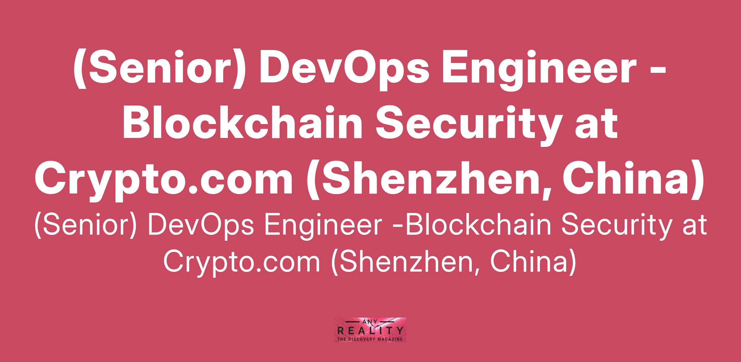 (Senior) DevOps Engineer -Blockchain Security at Crypto.com (Shenzhen, China)