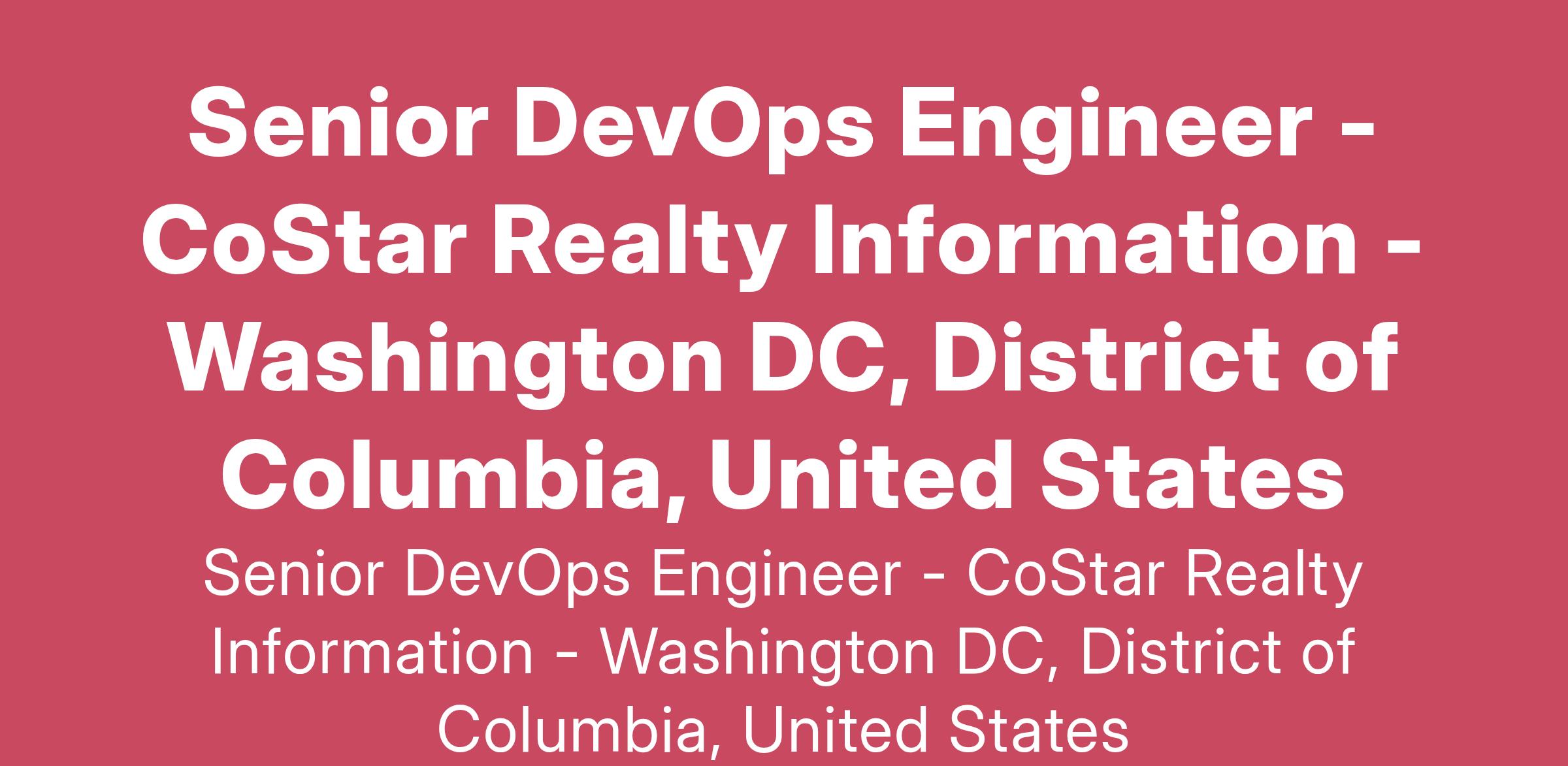 We are currently seeking an accomplished Senior DevOps Engineer to join our team, while supporting our multiple software products and brands across the organization, such as LoopNet, Apartments.com, Homes.com, and Ten-X.