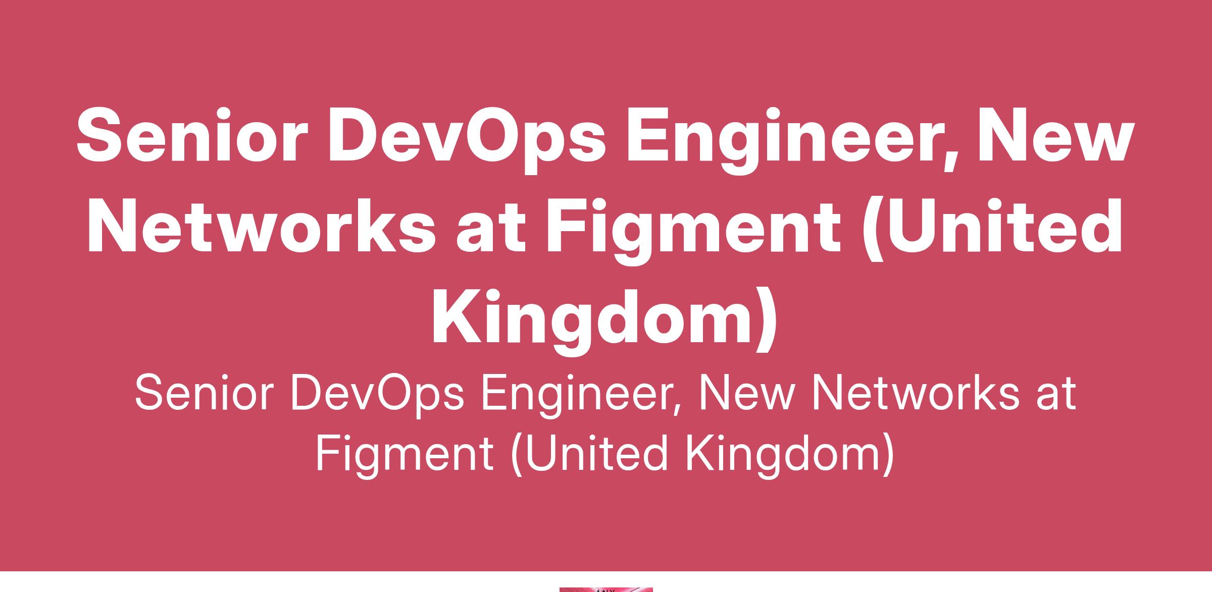 Senior DevOps Engineer, New Networks at Figment (United Kingdom)