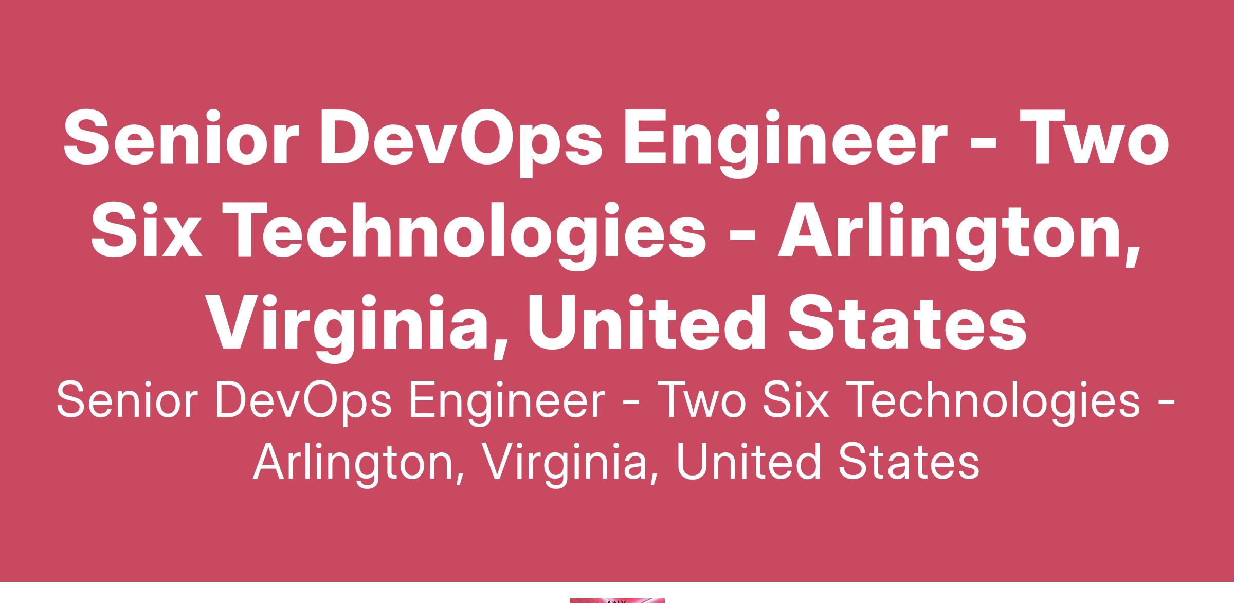 Two Six Technologies is looking for a Senior DevOps Engineer to work within a cross-functional development team focused on advancing state-of-the-art projects within the growing cybersecurity technology team in Arlington VA.