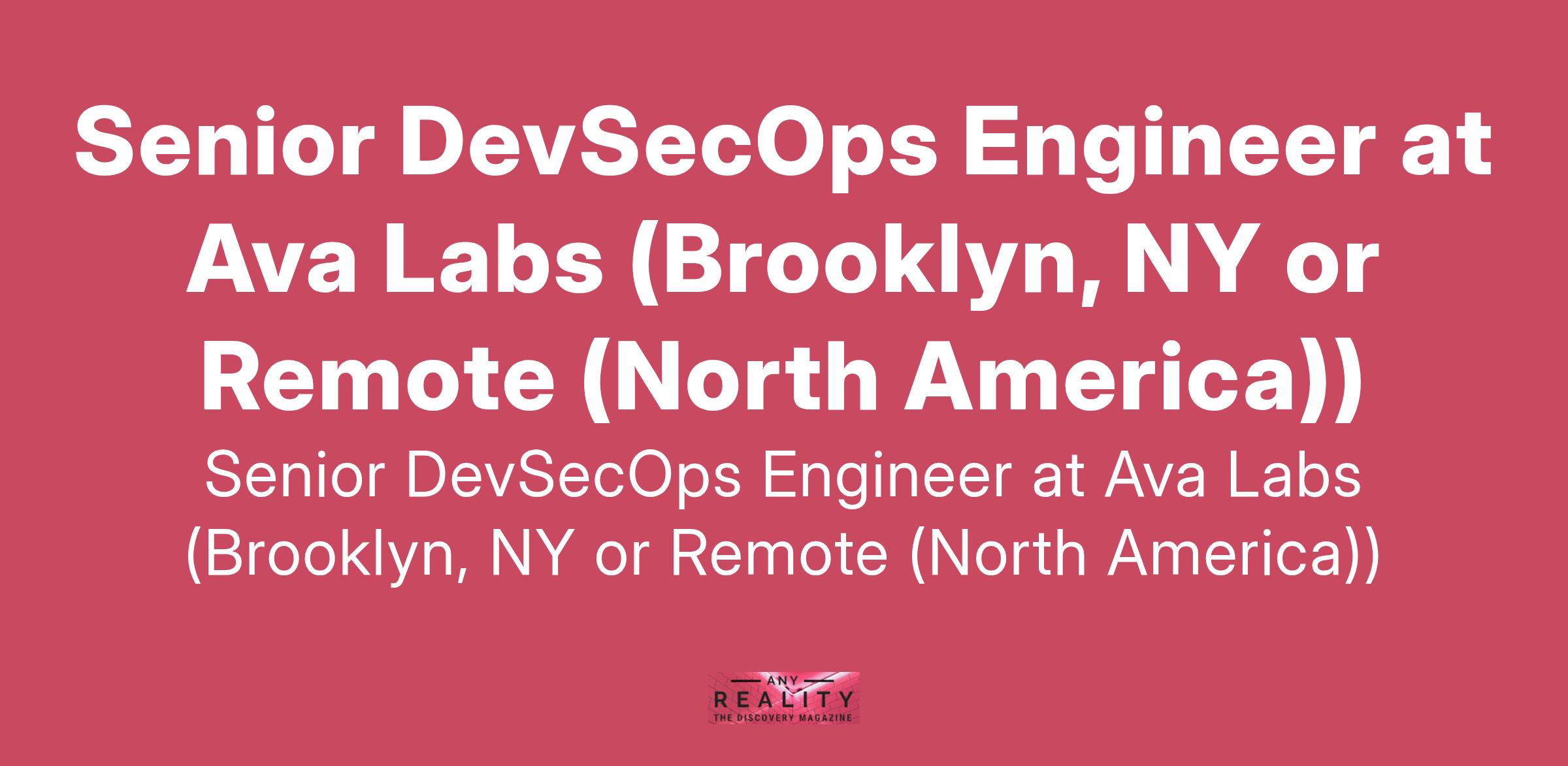Senior DevSecOps Engineer at Ava Labs (Brooklyn, NY or Remote (North America))