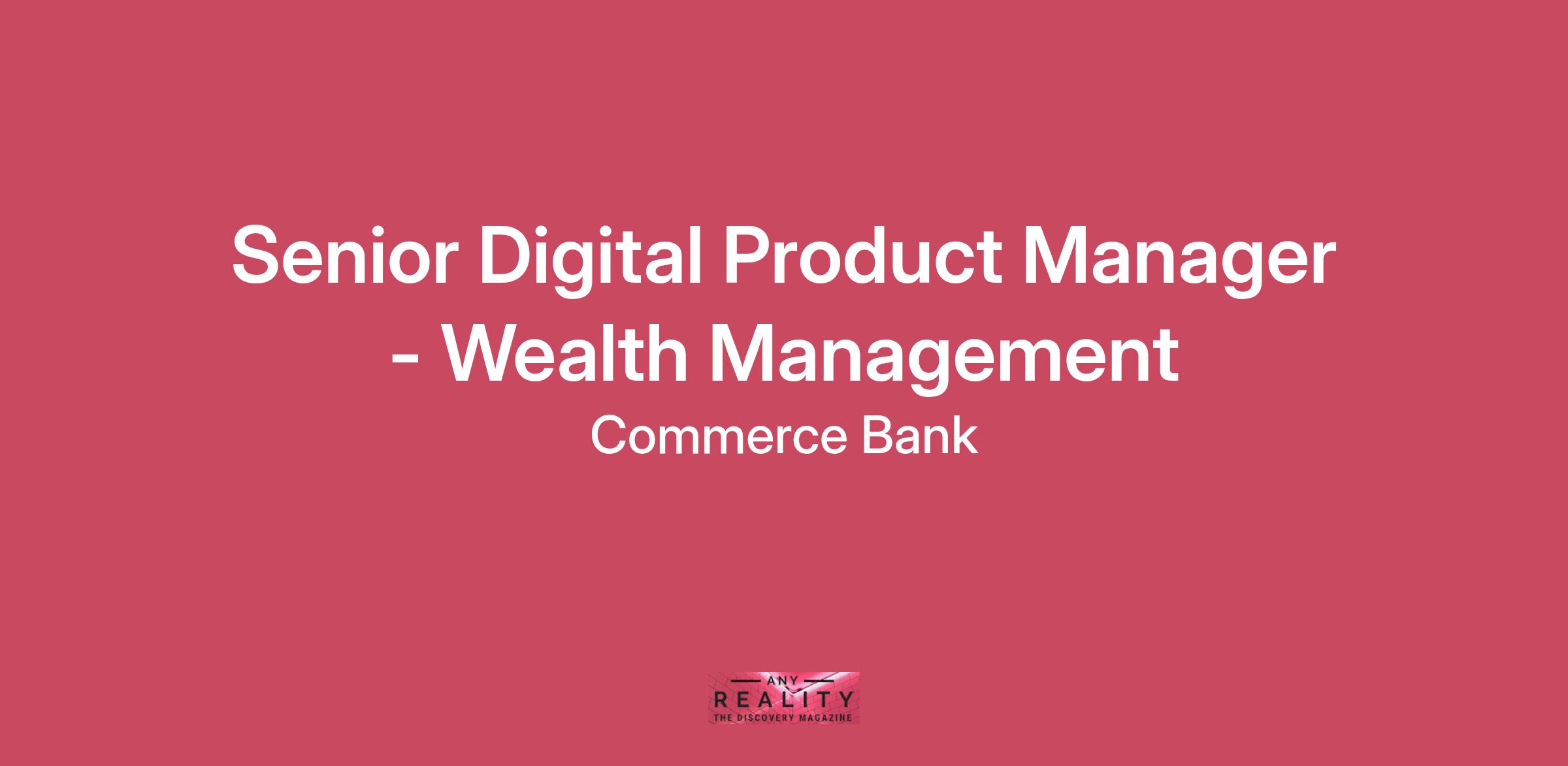 About Working at Commerce Building a career here is more than just steps on a ladder. It’s about helping people find financial safety and success, helping businesses thrive, and making sure people and their money are taken care of. And our commitment doesn’t stop there. Our culture is about our people, the ones in our communities and the ones that work with us. Here, you’ll find opportunities to grow and learn, to connect with others, and build relationships with the people around you. You’ll have the space and resources to grow into the best version of yourself. Because our number one investment is you.Creating an award-winning culture doesn't come easy. And after 160 years, we know Commerce Bank is only at its best when our people are. If this sounds interesting to you, keep reading and let’s talk. Compensation RangeAnnual Salary: $102,500.00 - $121,000.00 (Amount based on relevant experience, skills, and competencies.)For more than a century, Commerce Trust has been a leading provider of wealth management services including financial planning, estate and tax planning, investment management, private banking and trust administration services. Our approach to wealth management means assembling a team of seasoned wealth management professionals across disciplines who collaborate to ensure each client’s financial journey is uniquely crafted for their goals. Commerce Trust is a division of Commerce Bank.About This JobThe main purpose of this job is to drive the decisioning, planning, execution and communication of the Digital Program and ensure the competitiveness of existing and evaluation of new products and systems within Commerce Trust (CT). The Commerce Trust Digital Program covers complex, integrated, and enterprise reaching solutions and features.Essential FunctionsPartner with business line leaders to define, lead and influence the execution of CT Digital strategic business initiativesLead and influence strategic initiatives to ensure competitiveness of existing and evaluate new products, systems, and featuresIndependently create digital vision and timeline for implementation of identified features and deliverablesCreate and confidently deliver the digital roadmap vision and status to senior leadership and front office teamsMake recommendations to business line leadership in concert with the strategic directionLead vendor analysis efforts and provide input to product marketing plansIndependently lead the relationship with vendors and other technology partners in the execution of the strategic planPrepare business cases for new products and drive prioritization of initiativesPrimary decision-maker for all teams participating in execution effortsPrimary consultant in the creation of product training and transition product support to the individuals responsible for the general day-to-day support of the productPerform other duties as assignedKnowledge, Skills & Abilities RequiredIntermediate knowledge and understanding of product infrastructure and applicable legal and/or regulatory rulesIntermediate knowledge and experience of Product managementIntermediate knowledge and experience in Program managementExcellent relationship management skillsDemonstrated ability to resolve problems and identify and drive process improvementsDemonstrated ability to set goals, monitor and drive resultsDemonstrated ability to autonomously work and lead multiple priority projectsProven track record in coaching, mentoring, and trainingProven track record in building and leading projects of a wide variety of disciplines and backgroundsDemonstrated strong business acumen and the ability to make timely and sound business decisionsMotivated and organized self-starter with strong attention to detailInquisitive, agile and strong team player with excellent written, verbal and interpersonal communication skillsAbility to remain adaptable and resilient to all situations with an optimistic outlook and cast a positive shadow that is aligned with our culture and Core ValuesIntermediate knowledge of Microsoft Excel, Word and OutlookEducation & ExperienceBachelor’s degree in Business or equivalent combination of education and experience required5+ years product or program management or related experience required2+ years experience with digital products and systems preferred2+ years experience leading a cross-functional team preferredExperience in finance or investment management industry preferred***For individuals applying, assigned and/or hired to work in areas with pay transparency requirements, Commerce is required by law to include a reasonable estimate of the compensation range for some roles. This compensation range is for the Senior Digital Product Manager job and contemplates a wide range of factors that are considered in making compensation decisions, including but not limited to location, skill sets, education, relevant experience and training, licensure and certifications, and other business and organizational needs. The disclosed range estimate has not been adjusted for any applicable differentials (geographic, bilingual, or shift) that could be associated with the position or where it is filled. At Commerce, compensation decisions are dependent on the facts and circumstances of each situation. A reasonable estimate of the current base pay is $102,500 to $121,000 annually.The candidate selected for this position may be eligible for the following employment benefits: employer sponsored health, dental, and vision insurance, 401(k), life insurance, paid vacation, and paid personal time. In addition, we offer career development, education assistance, and voluntary supplemental benefits. Click here to learn more.Location: 922 Walnut St, Kansas City, Missouri 64106Time Type:Full time