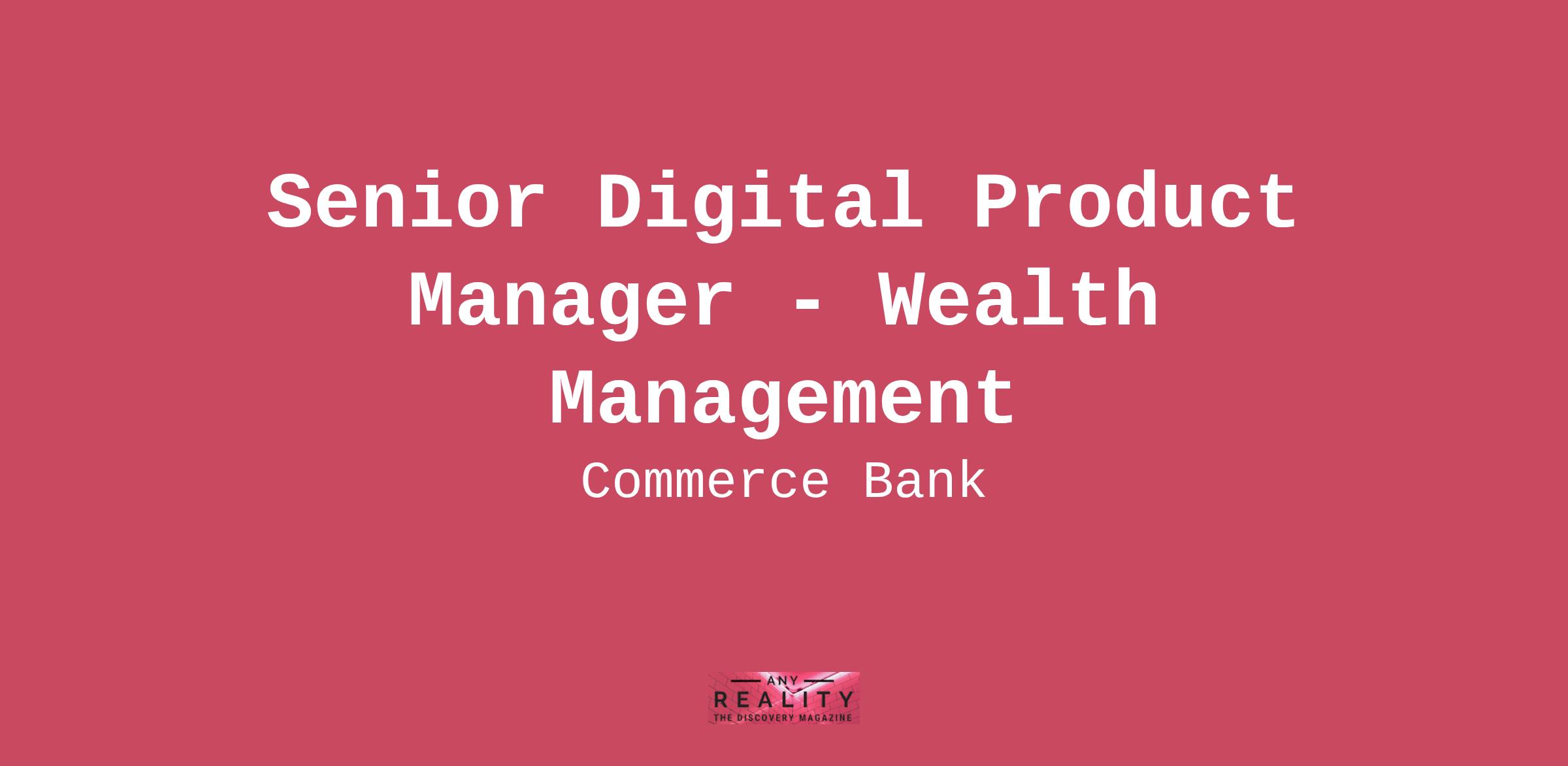 About Working at Commerce Building a career here is more than just steps on a ladder. It’s about helping people find financial safety and success, helping businesses thrive, and making sure people and their money are taken care of. And our commitment doesn’t stop there. Our culture is about our people, the ones in our communities and the ones that work with us. Here, you’ll find opportunities to grow and learn, to connect with others, and build relationships with the people around you. You’ll have the space and resources to grow into the best version of yourself. Because our number one investment is you.Creating an award-winning culture doesn't come easy. And after 160 years, we know Commerce Bank is only at its best when our people are. If this sounds interesting to you, keep reading and let’s talk. Compensation RangeAnnual Salary: $102,500.00 - $121,000.00 (Amount based on relevant experience, skills, and competencies.)For more than a century, Commerce Trust has been a leading provider of wealth management services including financial planning, estate and tax planning, investment management, private banking and trust administration services. Our approach to wealth management means assembling a team of seasoned wealth management professionals across disciplines who collaborate to ensure each client’s financial journey is uniquely crafted for their goals. Commerce Trust is a division of Commerce Bank.About This JobThe main purpose of this job is to drive the decisioning, planning, execution and communication of the Digital Program and ensure the competitiveness of existing and evaluation of new products and systems within Commerce Trust (CT). The Commerce Trust Digital Program covers complex, integrated, and enterprise reaching solutions and features.Essential FunctionsPartner with business line leaders to define, lead and influence the execution of CT Digital strategic business initiativesLead and influence strategic initiatives to ensure competitiveness of existing and evaluate new products, systems, and featuresIndependently create digital vision and timeline for implementation of identified features and deliverablesCreate and confidently deliver the digital roadmap vision and status to senior leadership and front office teamsMake recommendations to business line leadership in concert with the strategic directionLead vendor analysis efforts and provide input to product marketing plansIndependently lead the relationship with vendors and other technology partners in the execution of the strategic planPrepare business cases for new products and drive prioritization of initiativesPrimary decision-maker for all teams participating in execution effortsPrimary consultant in the creation of product training and transition product support to the individuals responsible for the general day-to-day support of the productPerform other duties as assignedKnowledge, Skills & Abilities RequiredIntermediate knowledge and understanding of product infrastructure and applicable legal and/or regulatory rulesIntermediate knowledge and experience of Product managementIntermediate knowledge and experience in Program managementExcellent relationship management skillsDemonstrated ability to resolve problems and identify and drive process improvementsDemonstrated ability to set goals, monitor and drive resultsDemonstrated ability to autonomously work and lead multiple priority projectsProven track record in coaching, mentoring, and trainingProven track record in building and leading projects of a wide variety of disciplines and backgroundsDemonstrated strong business acumen and the ability to make timely and sound business decisionsMotivated and organized self-starter with strong attention to detailInquisitive, agile and strong team player with excellent written, verbal and interpersonal communication skillsAbility to remain adaptable and resilient to all situations with an optimistic outlook and cast a positive shadow that is aligned with our culture and Core ValuesIntermediate knowledge of Microsoft Excel, Word and OutlookEducation & ExperienceBachelor’s degree in Business or equivalent combination of education and experience required5+ years product or program management or related experience required2+ years experience with digital products and systems preferred2+ years experience leading a cross-functional team preferredExperience in finance or investment management industry preferred***For individuals applying, assigned and/or hired to work in areas with pay transparency requirements, Commerce is required by law to include a reasonable estimate of the compensation range for some roles. This compensation range is for the Senior Digital Product Manager job and contemplates a wide range of factors that are considered in making compensation decisions, including but not limited to location, skill sets, education, relevant experience and training, licensure and certifications, and other business and organizational needs. The disclosed range estimate has not been adjusted for any applicable differentials (geographic, bilingual, or shift) that could be associated with the position or where it is filled. At Commerce, compensation decisions are dependent on the facts and circumstances of each situation. A reasonable estimate of the current base pay is $102,500 to $121,000 annually.The candidate selected for this position may be eligible for the following employment benefits: employer sponsored health, dental, and vision insurance, 401(k), life insurance, paid vacation, and paid personal time. In addition, we offer career development, education assistance, and voluntary supplemental benefits. Click here to learn more.Location: 922 Walnut St, Kansas City, Missouri 64106Time Type:Full time